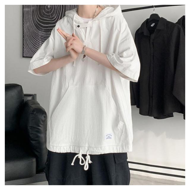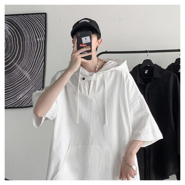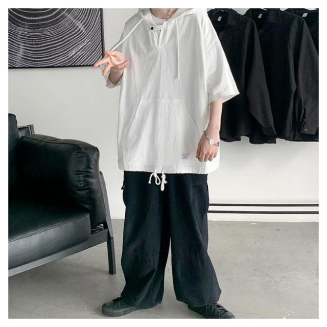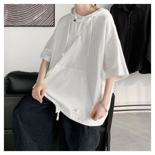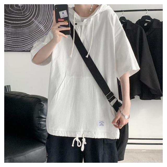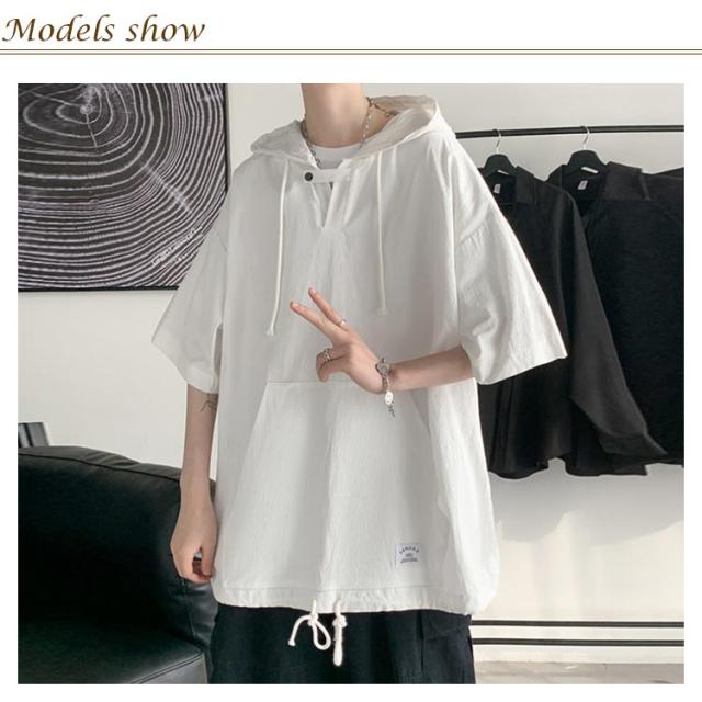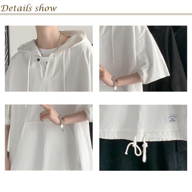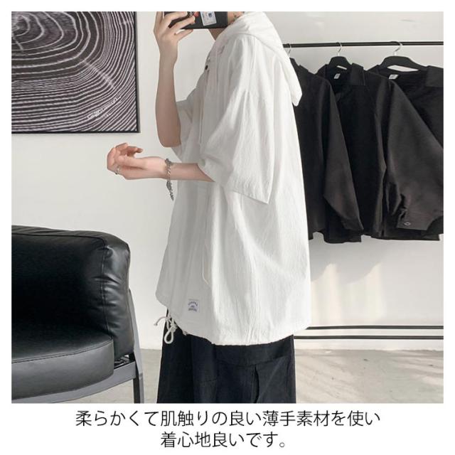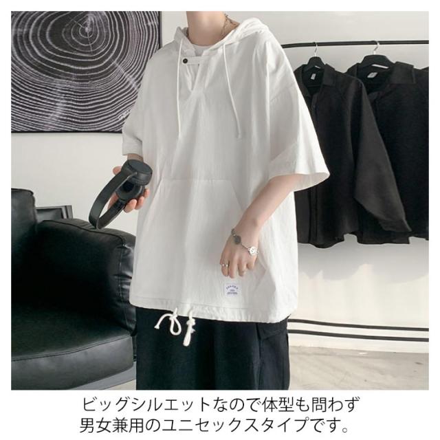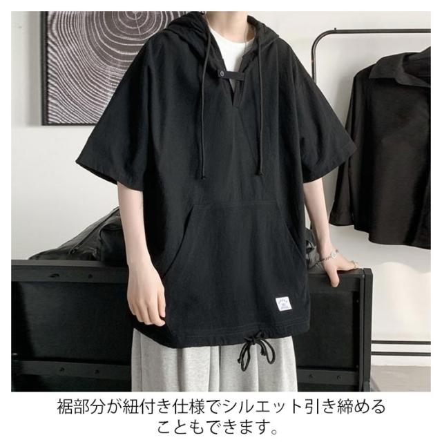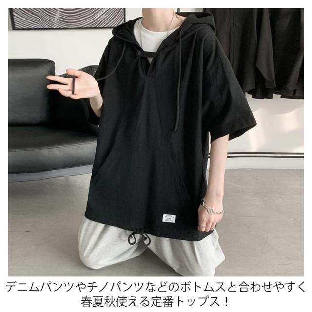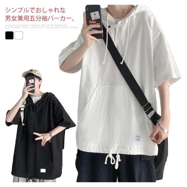 半袖パーカー 半袖tシャツ メンズ パーカー プルオーバーパーカー レディース 五分袖 フード付き トップス tシャツ ペア ビッグシルエット ユニセックス カジュアル ストリート お洒落 送料無料
