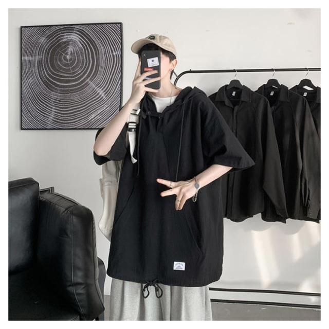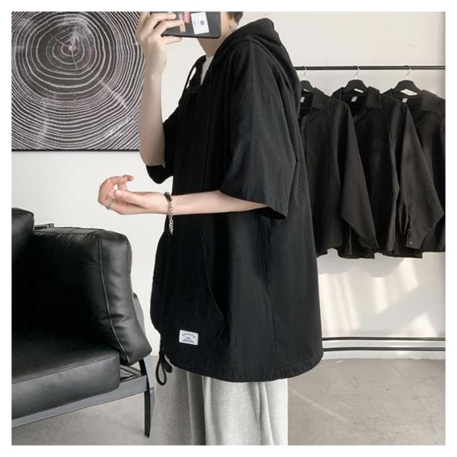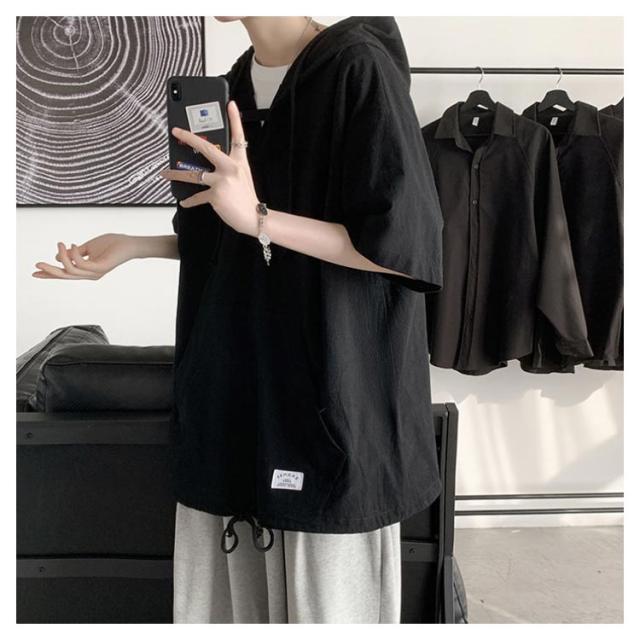 | シンプルでおしゃれな男女兼用五分袖パーカー。 柔らかくて肌触りの良い薄手素材を使い、着心地良いです。 ビッグシルエットなので体型も問わず、男女兼用のユニセックスタイプです。 裾部分が紐付き仕様でシルエット引き締めることもできます。 デニムパンツやチノパンツなどのボトムスと合わせやすく、春夏秋使える定番トップス! | |