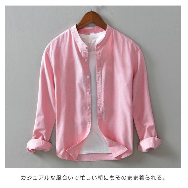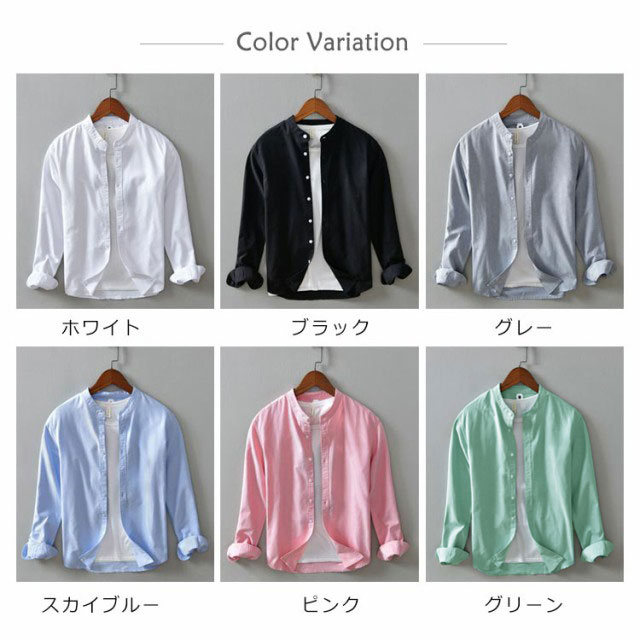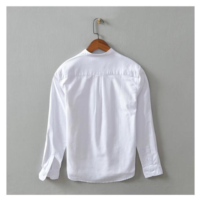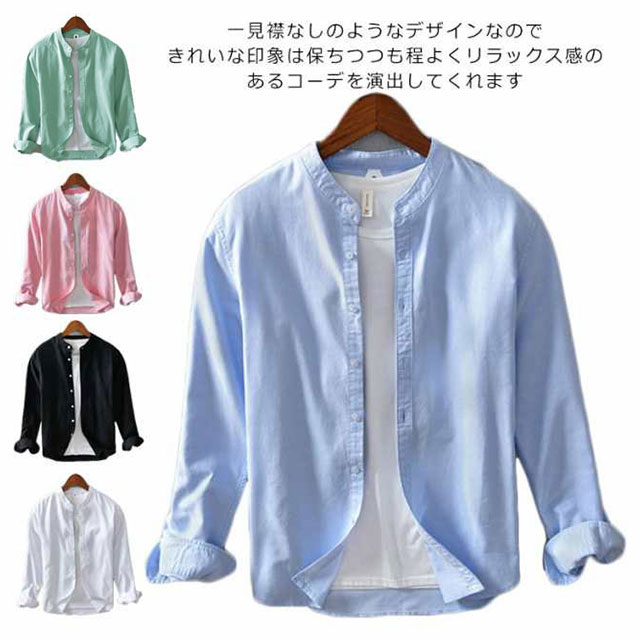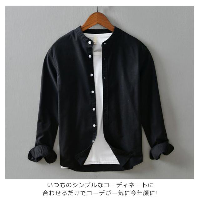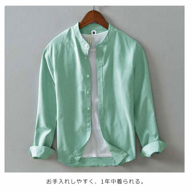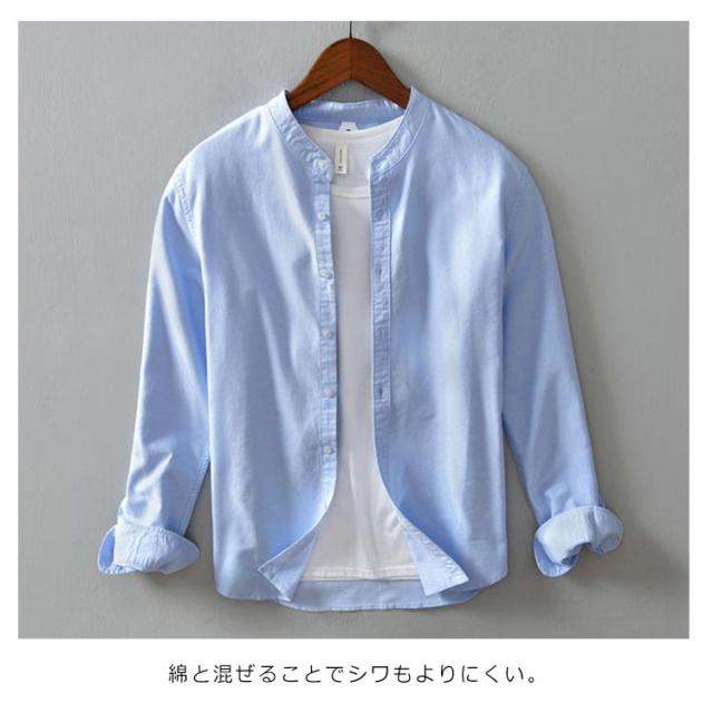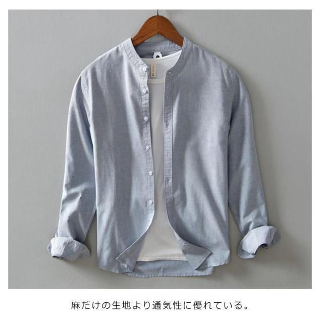 メンズ シャツ 秋 長袖 コットンリネン 麻混 綿麻 麻シャツ 送料無料 長袖 白シャツ 立襟 バンドカラー トップス 無地 大きいサイズ M~3XL