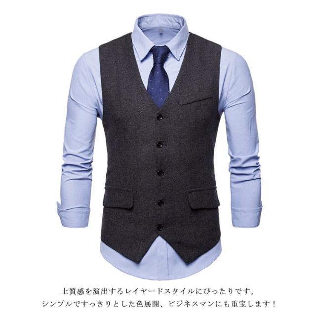 【送料無料】メンズベスト ビジネス スーツベスト フォーマル ベスト 衿なし ジレ スーツ トップス 男性用 紳士用 スリム 細身 ベスト メンズファッション かっこいい 結婚式 通勤 音楽会 無地