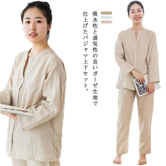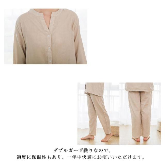 パジャマ 上下セット 二重ガーゼ 綿100% レディース ルームウェア 送料無料 長袖 長ズボン 部屋着 ダブルガーゼ パジャマ 通気性 吸水性 前開き ふんわり