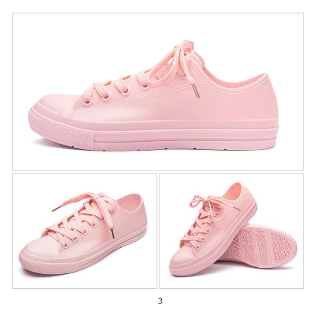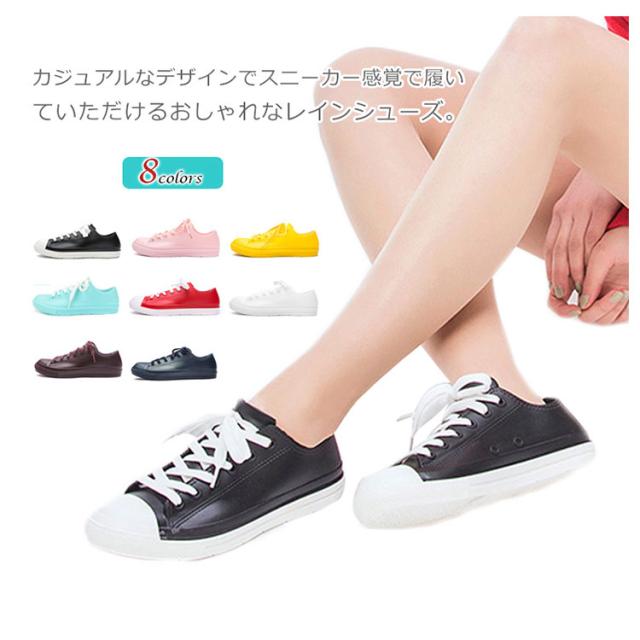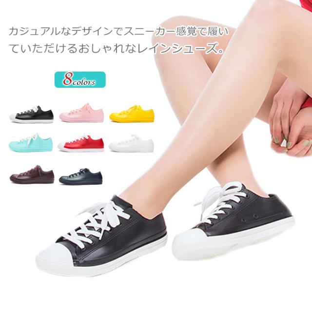 レインシューズ スニーカー風 編み上げ レースアップ レインブーツ ショート丈 防水 ラバー カラフル 雨靴 晴雨兼用 ローヒール カジュアル 歩きやすい 春 夏 小さいサイズ 大きサイズ 可愛い