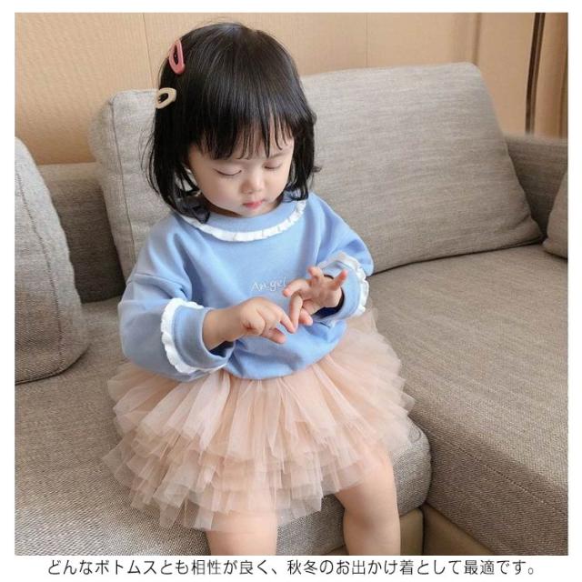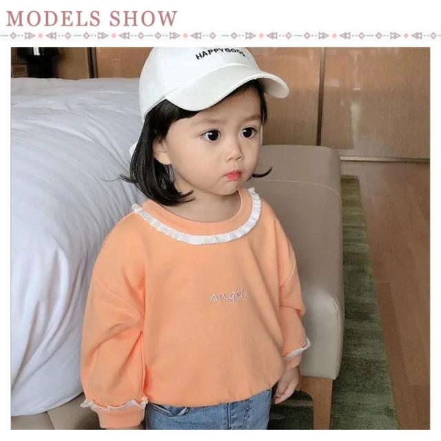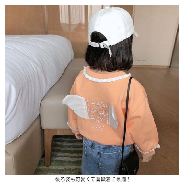長袖トップス 女の子 Tシャツ 秋物 かわいい 春 翼 天使 キッズ 韓国子供服 子ども服 春 秋 冬 90cm 100cm 110cm 120cm 130cm 刺? フレア コットン 可愛い ブルー オレンジ プレゼント 誕生日 送料無料