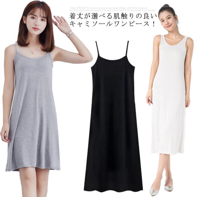 インナーワンピース キャミソールワンピース レディース ノースリーブ キャミワンピ ペチコート 吊りスカート ショート丈 膝上 ミディアム ロング 春 夏 秋 無地 モダール 部屋着 3種類の丈 送料無料