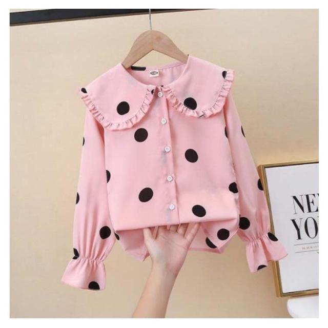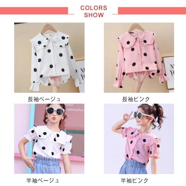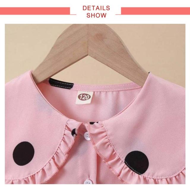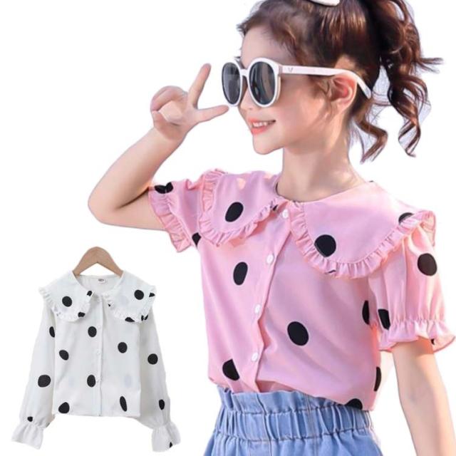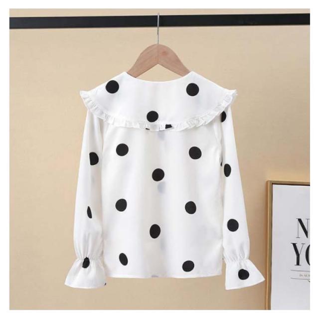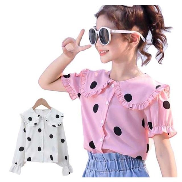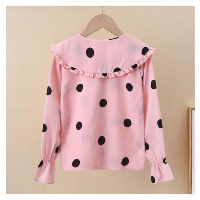 キッズ フリルTシャツ オシャレTシャツ ドット柄 秋 春 長袖 ロングTシャツ Tシャツ 折襟 送料無料 リボン シンプル カジュアル オシャレ フォーマル ナチュラル オシャレ おでかけ 普段着 子供服