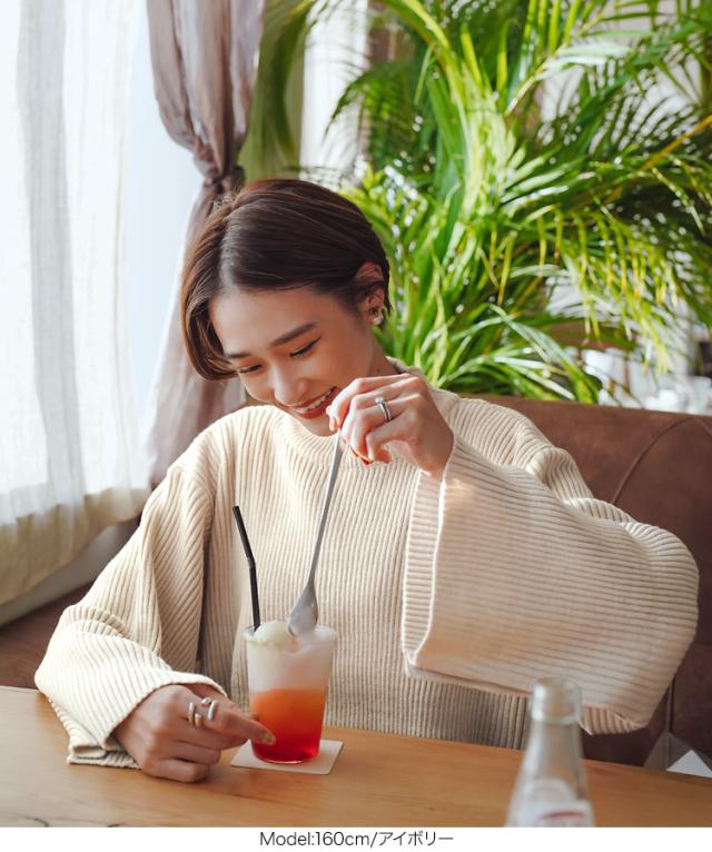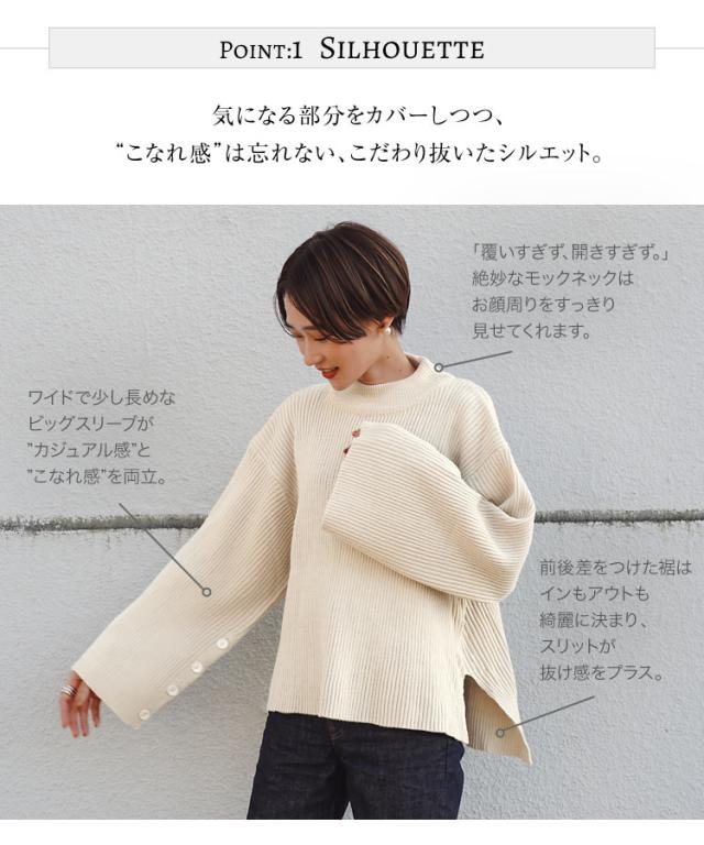 人気インフルエンサーのeriさんとのコラボアイテム。ゆるっとシルエット&ワイドスリーブが女性らしさを引き立てるニットトップスです。袖下に並んだボタンは実際に開閉できるので、スリットを作ってもこなれ感がプラスされます◎。こだわりの色展開もポイント。【素材・サイズ感】肌心地よく暖かみのある素材を使用。ご自宅で手洗いいただけるのでデイリーユースにぴったり。しっかりとしたリブ編みのニット素材になっているので、体のラインを拾いにくいのも魅力。また、覆いすぎず開きすぎない絶妙なモックネックが、お顔周りをすっきり見せ小顔効果も◎。この冬大活躍間違いなしのアイテムです。※キャンセル/変更不可※お届けまでの日程について