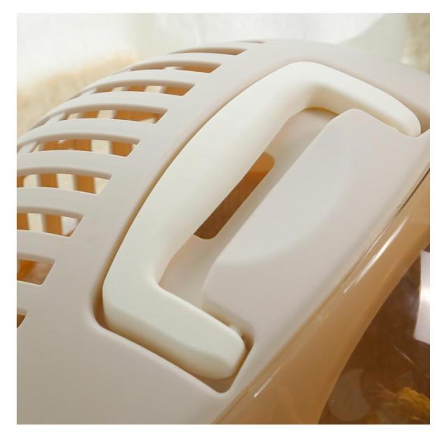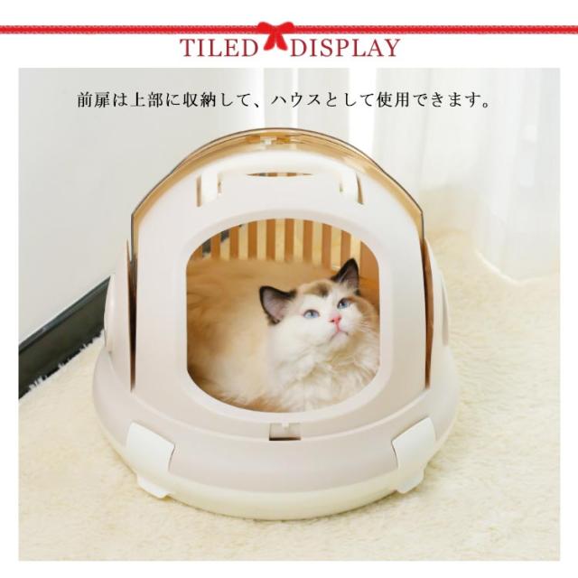 | スイングアップ式のドアなので、フードの開閉がスムーズにできます。 前扉は上部に収納して、ハウスとして使用できます。 分解できるのでお手入れも簡単です。 背部には通気性を考慮した快適設計です。 ロック機能付きで、飛び出しを防ぎます。 軽量1.5kgで、ハンドル付きなので、持ち運びラクラク! 大きいな半透明のドアで、ペットの様子が一目瞭然。 | |