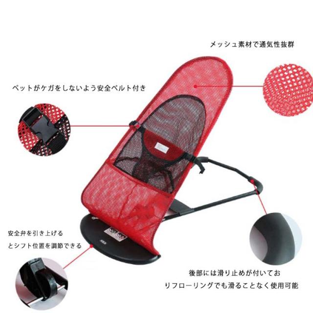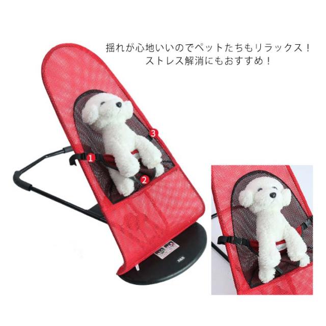 | 3段階の角度調整可能なペットバウンサー! メッシュ素材で通気性抜群!夏でも快適に使えます。 揺れが心地いいのでペットたちもリラックス!ストレス解消にもおすすめ! | |