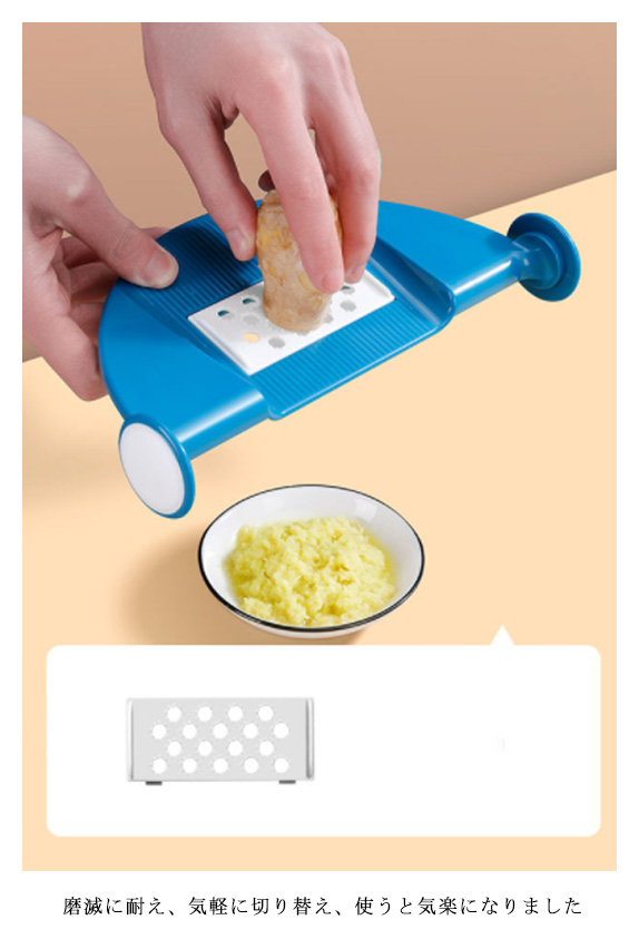 | 野菜の下ごしらえはこれ1台ですべてOK!様々な野菜に応用できて便利! ニンジン以外にも、玉ねぎ、じゃがいも、大根、ポテトなど、様々な野菜に応用できて便利! アップグレード、本体強化、双層デザイン、より丈夫で、耐える力が強い、耐用性、全面的の野菜調理器 安全ホルダー付き。指が直接食材に触れずに野菜を切ることができます。特に子供が使う時怪我を防止することができます。 さまざまな食材に合わせて、切れる厚み調節機能が付いていれば人?工学を基づいて滑り止めクッションを設計しました。 磨滅に耐え、気軽に切り替え、使うと気楽になりました。 食品レベルの原材料、五つの鋭い高品質のステンレス製ブレードからなっておりますので、清潔感があり、切れ味が良く、どんなキッチンにも合います。 取り替えの五つブレード、ステンレス製、切れ味抜群、鋭いで、洗う時に気をつけてください。 | |
