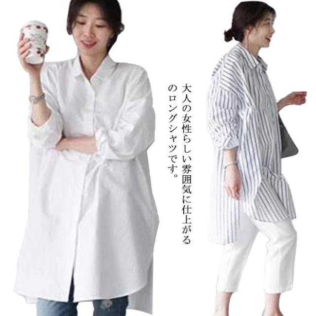 【送料無料】シャツ レディース ロングシャツ 長袖ブラウス トップス ブラウスシャツ オフィス 無地 ストライプ レディースファッション エレガント フェミニン 通勤 春 夏 秋 カジュアル フォーマル