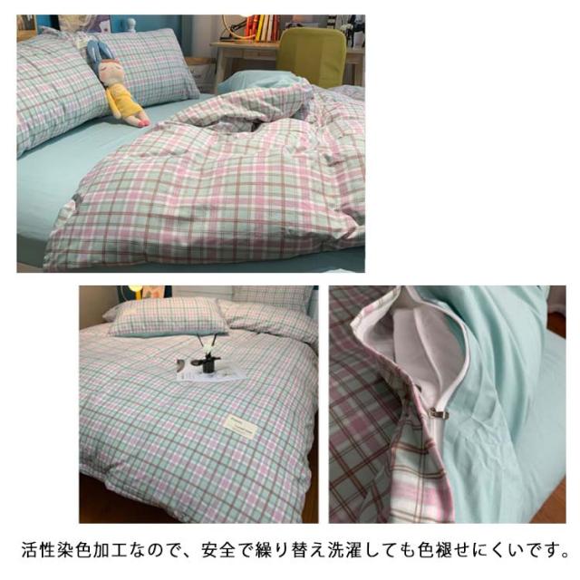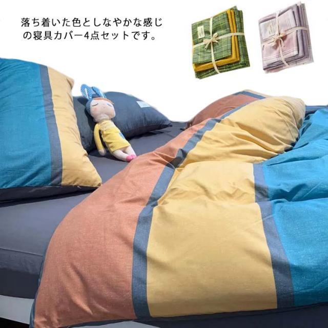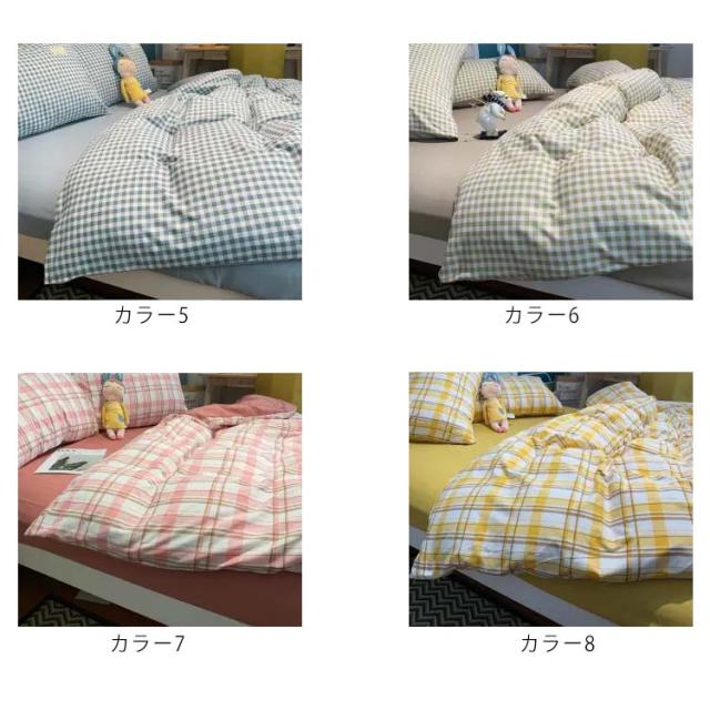 布団カバー 4点セット セミダブル 北欧 おしゃれ シーツ 掛け布団カバー 枕カバー シンプル 柔らか 肌に優しい 可愛い ギンガムチェック 無地 ストライプ柄 丸洗いOK ホテル仕様 速乾 安心 清潔