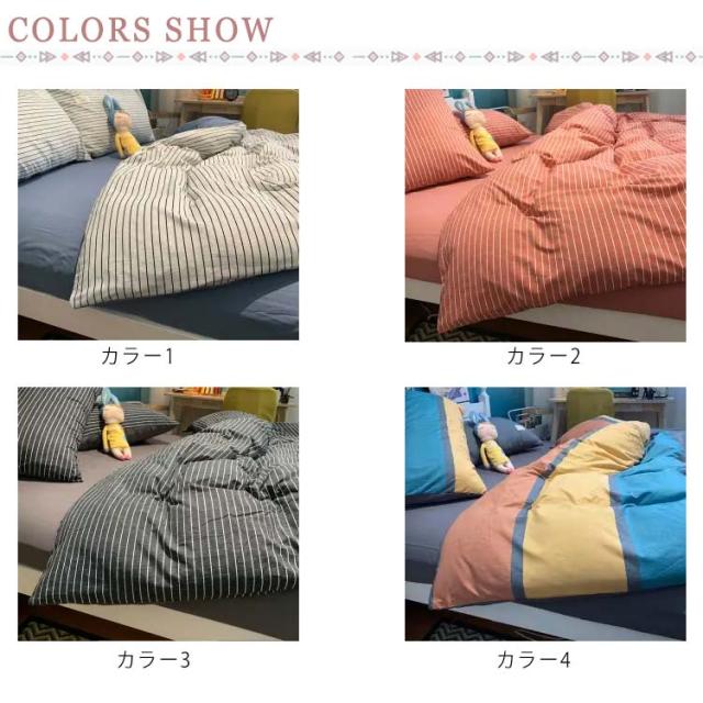 | サイズについての説明 | 掛け布団カバー150×200cm シーツ200×230cm 枕カバー48×74cm(2枚) |
