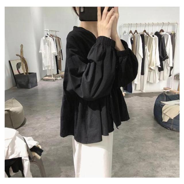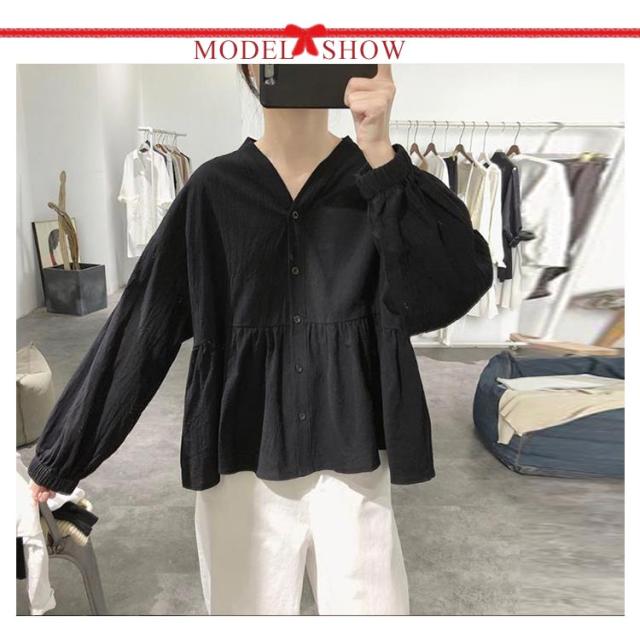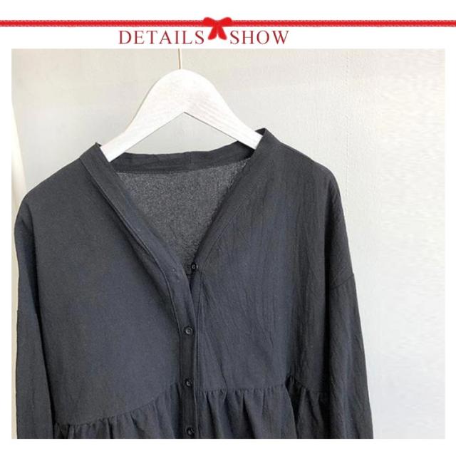 【送料無料】シャツ レディース リネン シャツ 長袖ブラウス トップス ブラウスシャツ 羽織 vネック 無地 ドロップショルダー ギャザー レディースファッション 春 夏 秋 カジュアル フォーマル 体型カバー