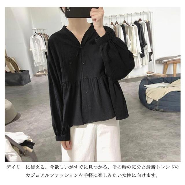 | ギャザーを寄せたボリュームのある袖デザインが印象的なブラウス。 デイリ—に使える、今欲しいがすぐに見つかる、その時の気分と最新トレンドのカジュアルファッションを手軽に楽しみたい女性に向けます。 ウエストの切り替え、腰回りがカバーできる着丈になりますのですっきりとしたシルエットに見せてくれるのも特徴のデザインです。 | |