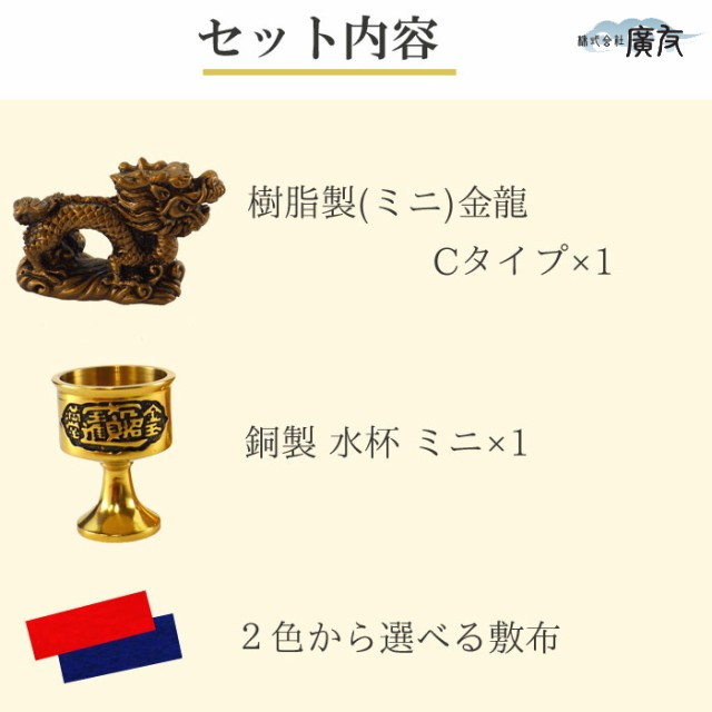 送料無料 龍の置物 龍 置物 龍グッズ ミニ金龍 Cタイプと水杯のセット 樹脂製 龍 水杯 セット 風水 龍 四本爪 置物 風水 玄関 置物 龍の置物 風水 福袋 2026年福袋