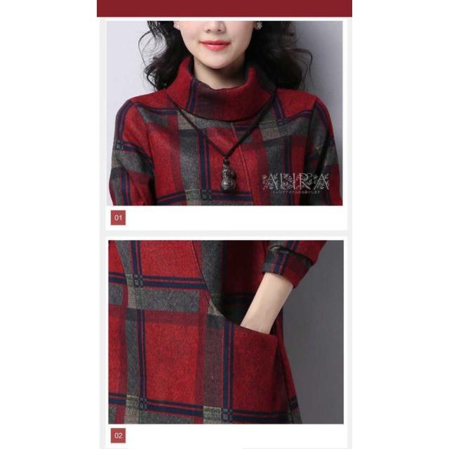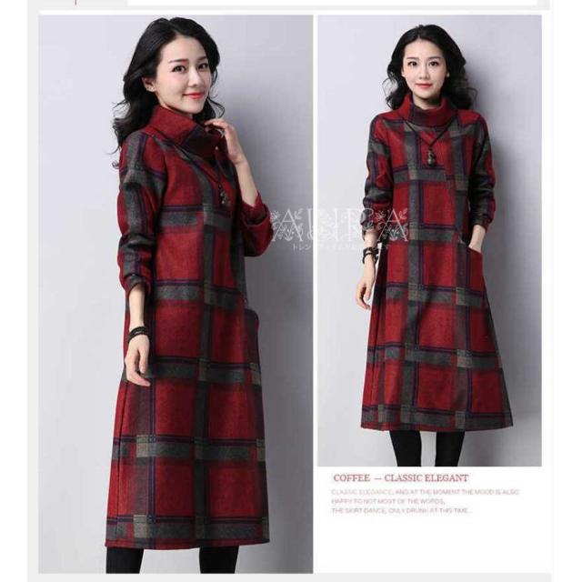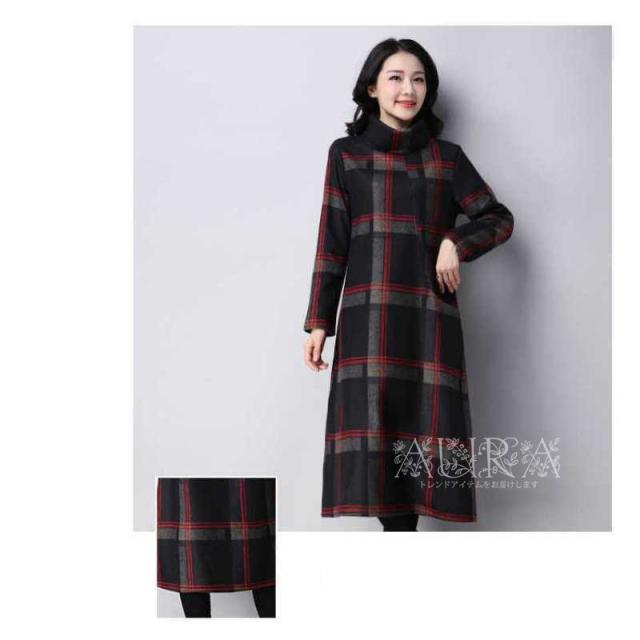 ワンピース レディース ロング丈 秋 冬 ワンピース 長袖 ママワンピース 大きいサイズ キレイめ ハイネック チェック柄 裏起毛ワンピ ゆったり 30代 40代 50代