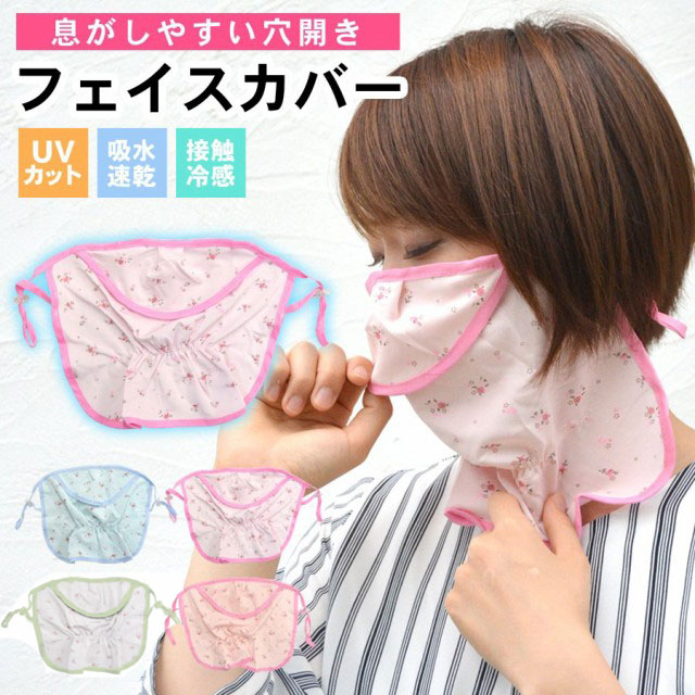 スポーツマスク ランニング フェイスカバー マスク 冷感 接触冷感 花柄 アイスシルク 呼吸が楽 呼吸穴 穴あき 洗える UVカット 夏用マスク 送料無料