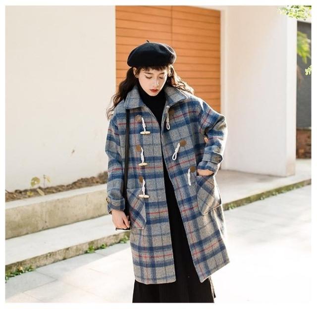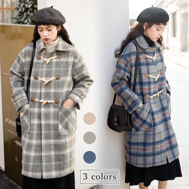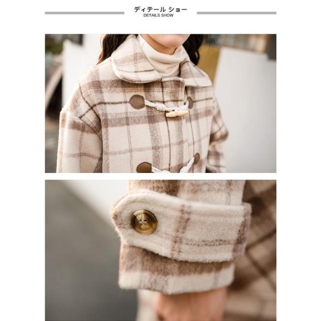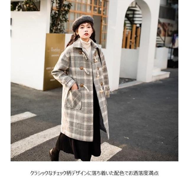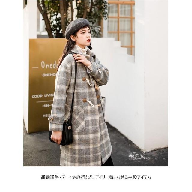 ダッフルコート チェック柄 レディース ラシャコート コート 冬 ツイードコート 冬アウター チェック柄コート レトロ ロングコート 通勤 通学