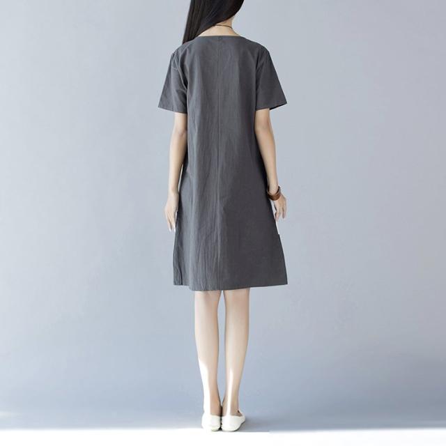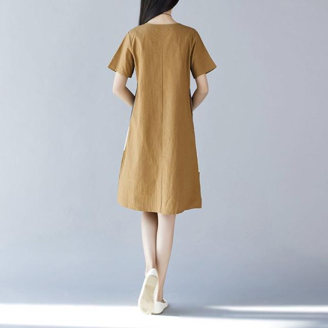 秋ワンピゆったりマキシワンピース綿麻混aライン半袖 ワンピースレディースロングシャツワンピース2020春 秋春コーデ通勤きれいめ