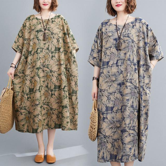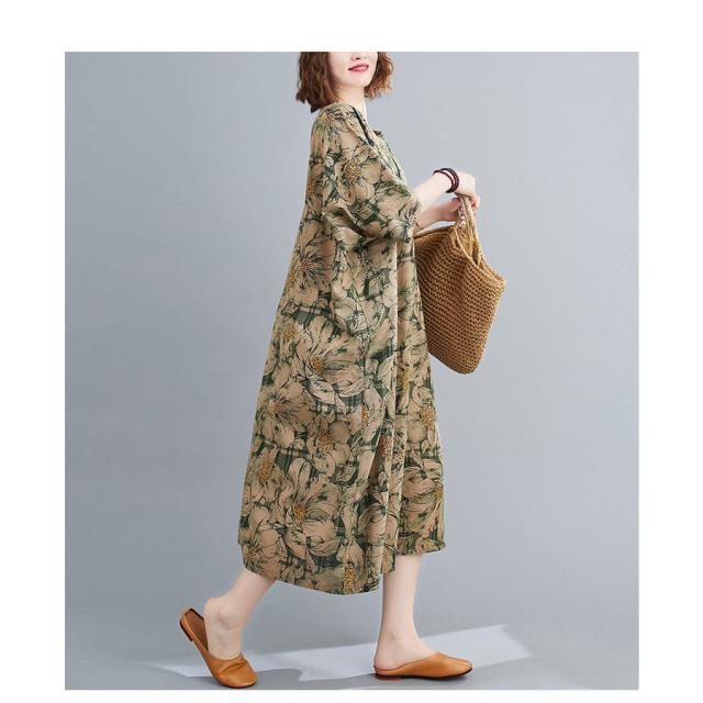 通勤大きいサイズ マキシワンピース体型カバー レディースゆったりエスニックミモレ丈ワンピース2021春 秋春コーデきれいめ ルームウェア 服お出かけ