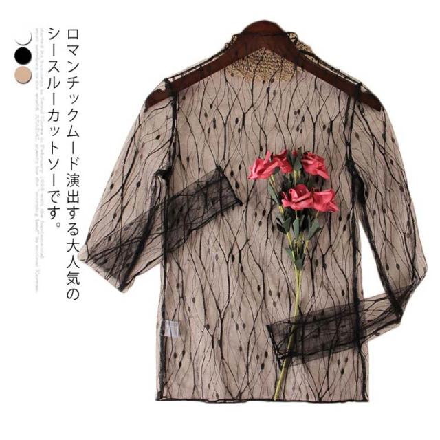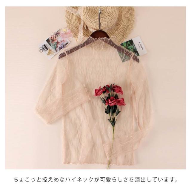 ブラウス レース 透け シースルー トップス レースブラウス ハイネック ブラウス チュールレース 姫糸 透け感 インナー カットソー 長袖 キレイめ セクシー オシャレ 可愛い オールシーズ 新作