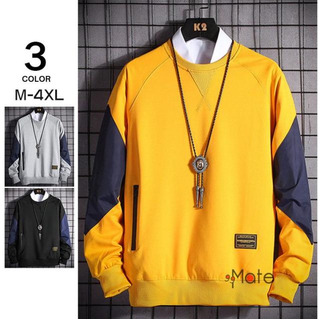 トレーナー メンズ プルオーバー スポーツ 長袖トレーナー 切り替え ルームウェア トップス 秋冬 秋服 春服