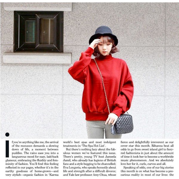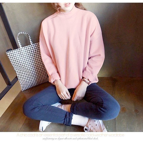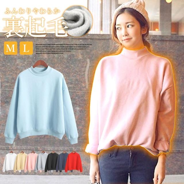 トレーナー レディース 韓国 裏起毛 大きめ 赤 秋 ハイネック トップス レディースファッション 20代 30代 40代 50代 部屋着 暖かい