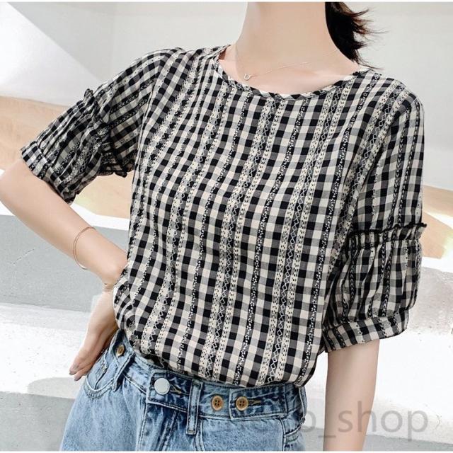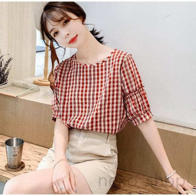 夏新作 ブラウス シャツ レディース クルーネック 半袖 シフォンシャツ チェック柄 トップス ビジネス 通勤 女性 エレガント セミフォーマル 20代30代40代