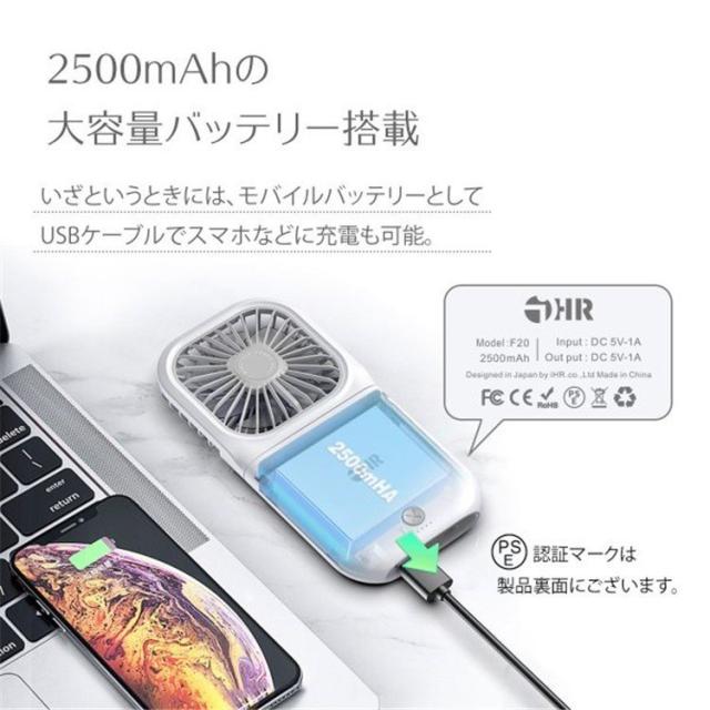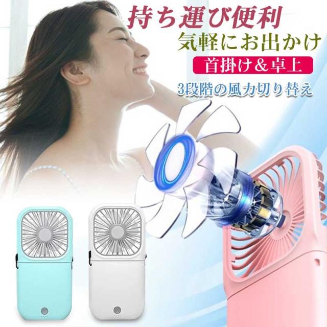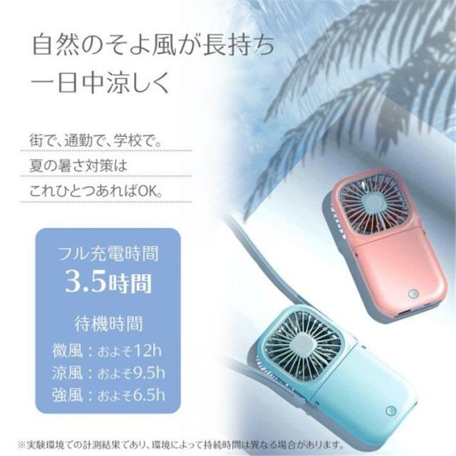 ミニ扇風機 首掛け扇風機 持ち運び便利 充電式 モバイルバッテリー ポータブル ハンズフリー扇風機 ハンディ おしゃれ USB 静音 卓上扇風機