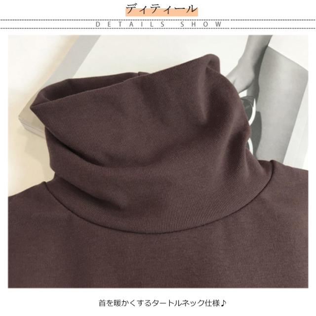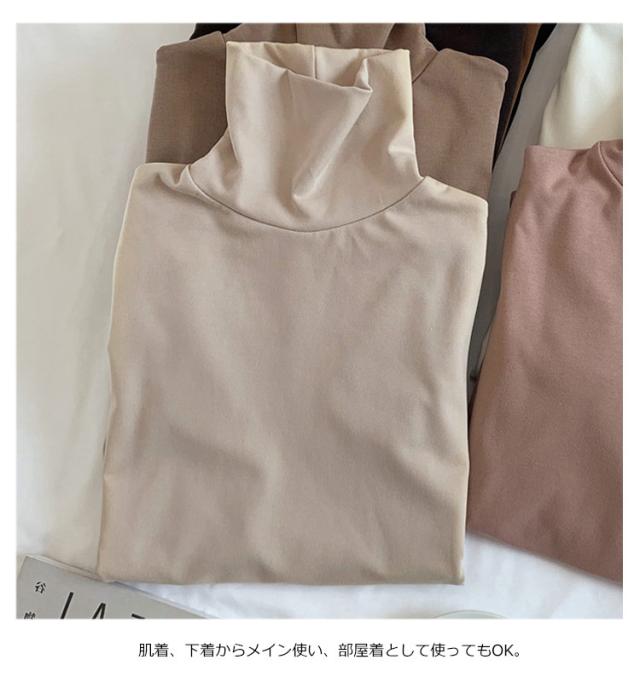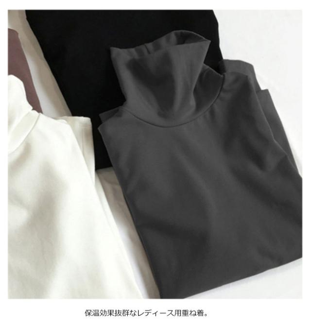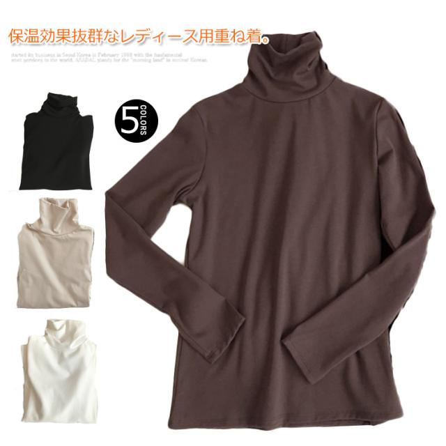 送料無料 重ね着 レディース Tシャツ トップス tシャツ インナー ルームウェア カットソー 下着 部屋着 長袖 タートルネック 両面微起毛 暖かい 無地 春 秋 冬