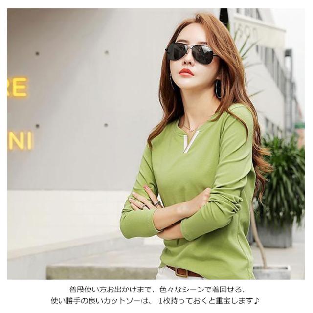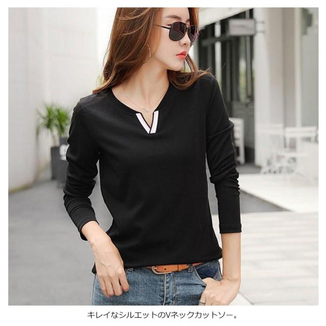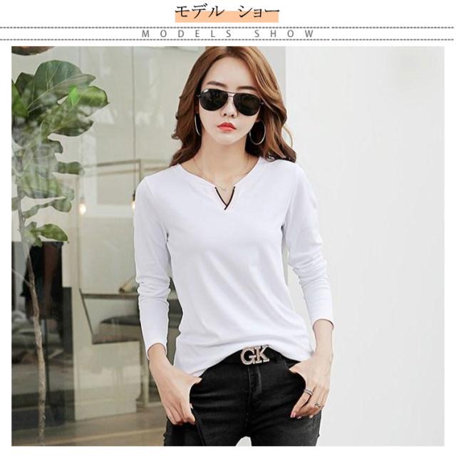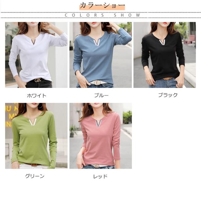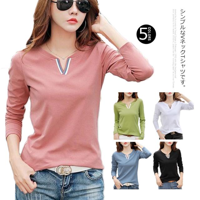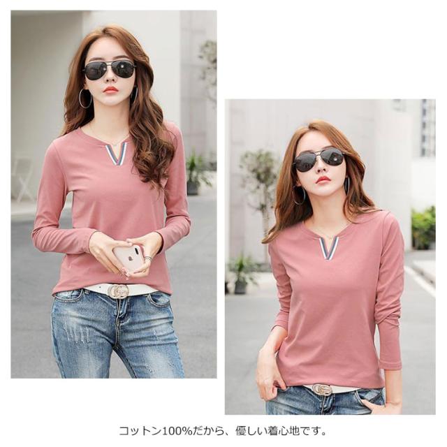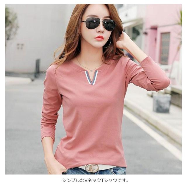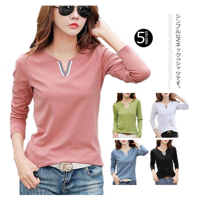 送料無料 Tシャツ レディース トップス インナーtシャツ 綿tシャツ 長袖 Vネック ゆったり 無地 プルーオーバー 大きいサイズ 通学 通勤OL 春物 秋物 春 秋 20代 30代 40代 50代