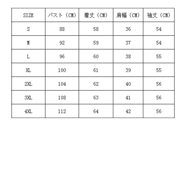 | サイズ | S M L XL 2XL 3XL 4XL |