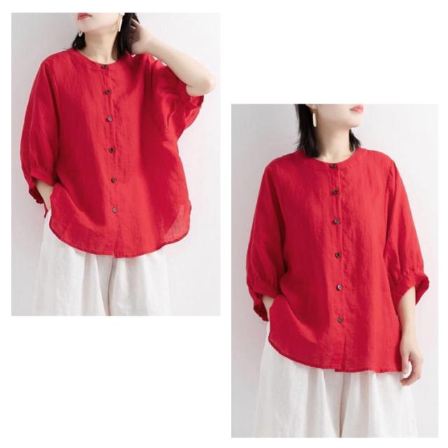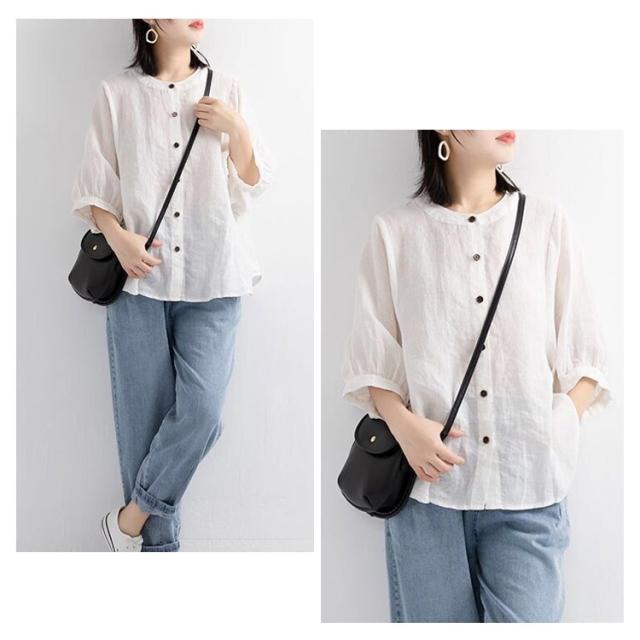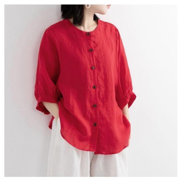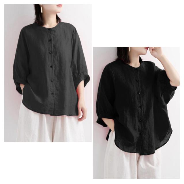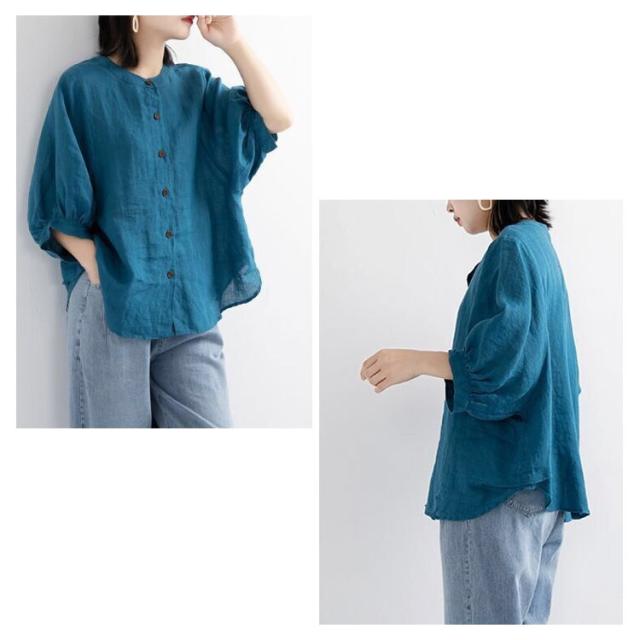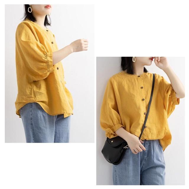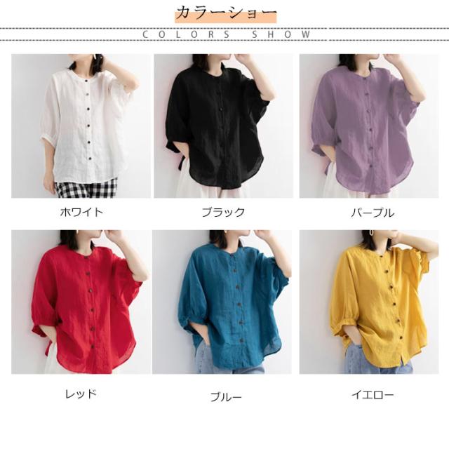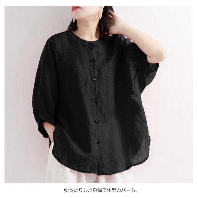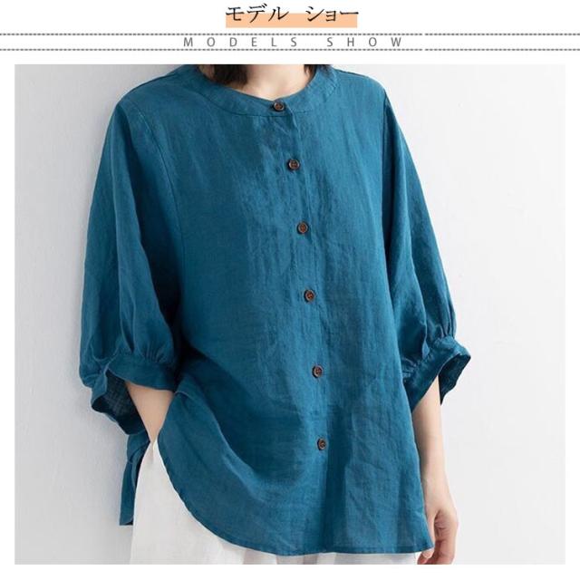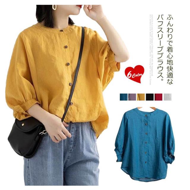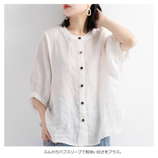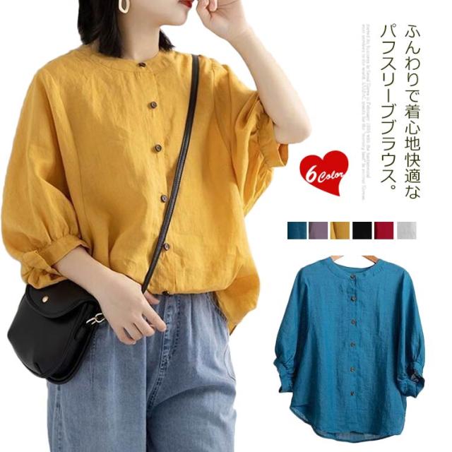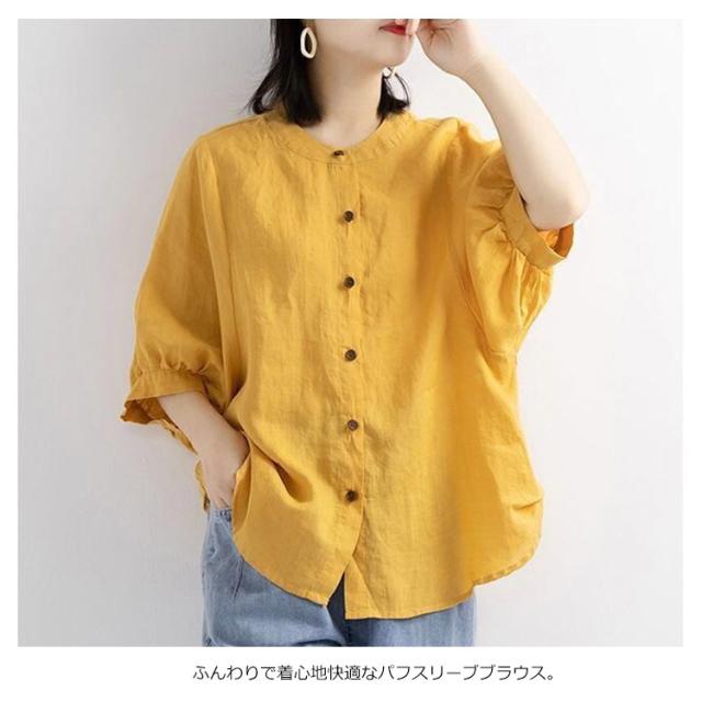送料無料 ブラウス レディース シャツ トップス パフスリーブブラウス 体型カバー パフスリーブ 半袖 ワイド リネン混 麻混 春夏 おしゃれ ナチュラル 無地