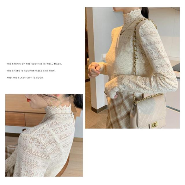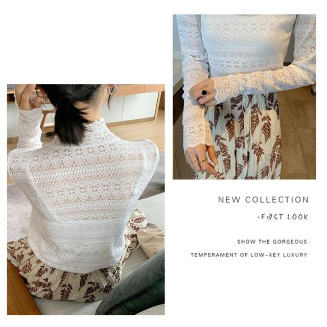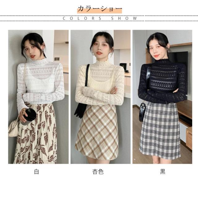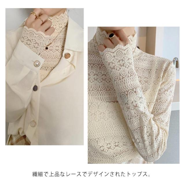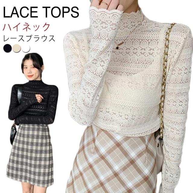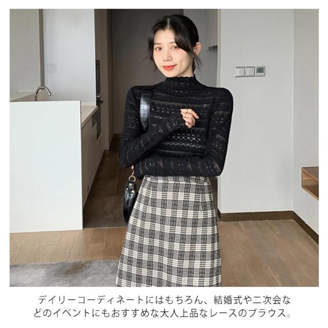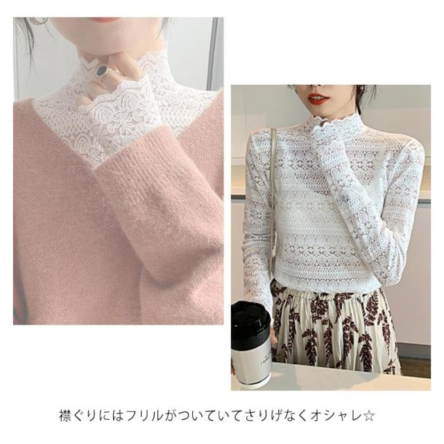 シースル レース ブラウス ハイネック レディース 長袖 レース トップス 結婚式 お呼ばれ セクシー 透け フリルブラウス 立ち襟 レース インナー プルオーバー 長袖 ブラウス シースルー レース トップス ブラウス パーティー 送料無料
