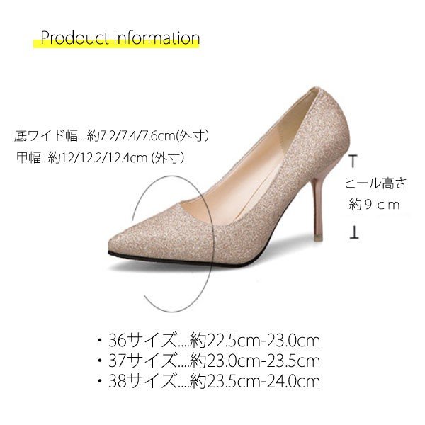 | サイズについての説明 | ラメ パンプス 歩きやすいパンプスシンプルなコーデにもこれを履くだけで華やかになるグリッターパンプスに後ろ姿やふとした瞬間にチラリと見えるレッドヒールが視線を集めます☆美脚ライン魅せにもピッタリのシューズ。【サイズ】・サイズ....36,37,38サイズ・36サイズ....約22.5cm-23.0cm・37サイズ....約23.0cm-23.5cm・38サイズ....約23.5cm-24.0cm【詳細】・ヒール....約9cm・ワイド....約7.2/7.4/7.6cm・甲幅...約12/12.2/12.4cm (外寸)・生産国....中国・カラー....SLV、GLD・素材....合皮歩きやすい パンプス レッドソール シューズ ピンヒール レッドソール ハイヒール 痛くない ジュエリーパンプス 春 夏 秋 冬 シルバー ゴールド |