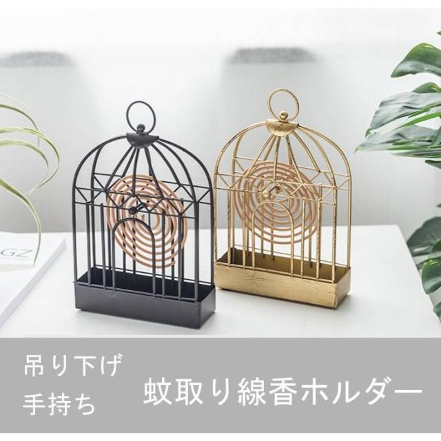 蚊取り線香入れ おしゃれ アイアン製 吊り下げ 手持ち ホルダー アウトドア ブラック ゴールド