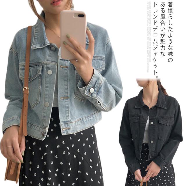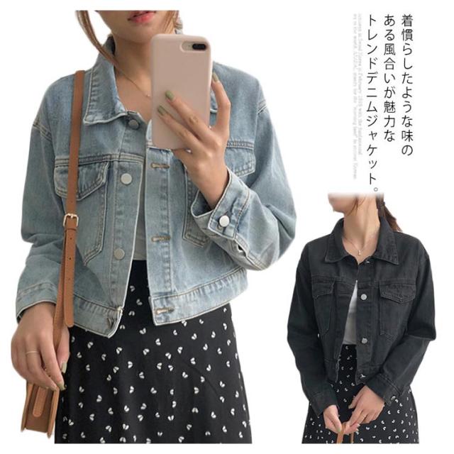 送料無料 デニムジャケット レディース Gジャン デニム ジャケット ショート丈 ショートジャケット 長袖 色落ち ウォッシュ加工 ドロップショルダー 上着 お洒落 カジュアル ゆったり 細身 春秋