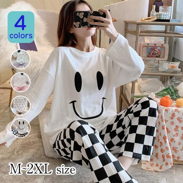 パジャマ レディース ルームウェア 春夏 綿 長袖 女性 セットアップ チェック柄 可愛い 韓国風 寝巻き 部屋着 上下セット ゆったり 20代 30代 40代 50代