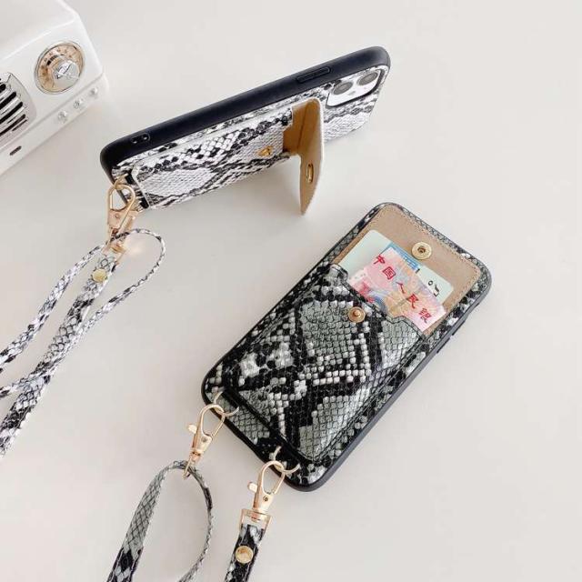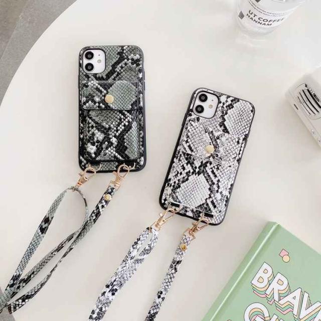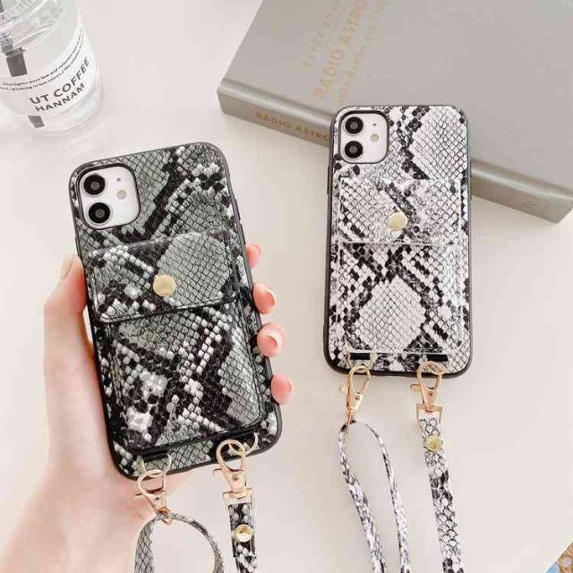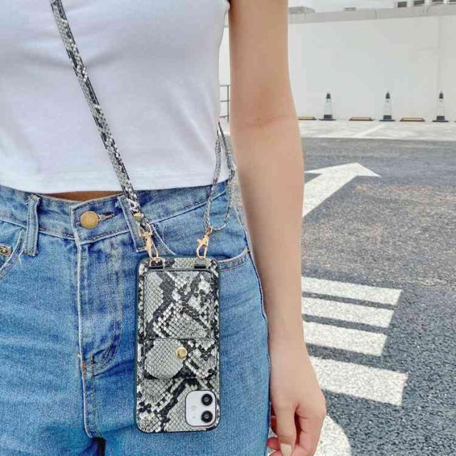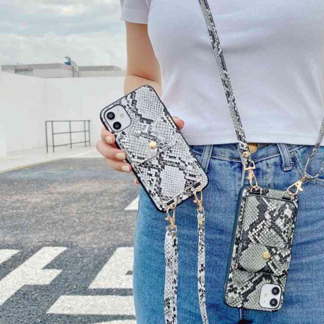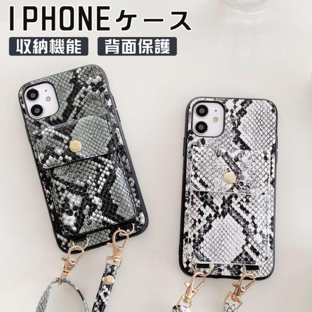 アイフォン 12 ケース ヘビ柄背面ケース 収納ポケット iphone 12Pro 12mini iPhone XR XS XSMAX ベルト付き アイホン11 11pro iPhone se2 第2世代 7 8 plus