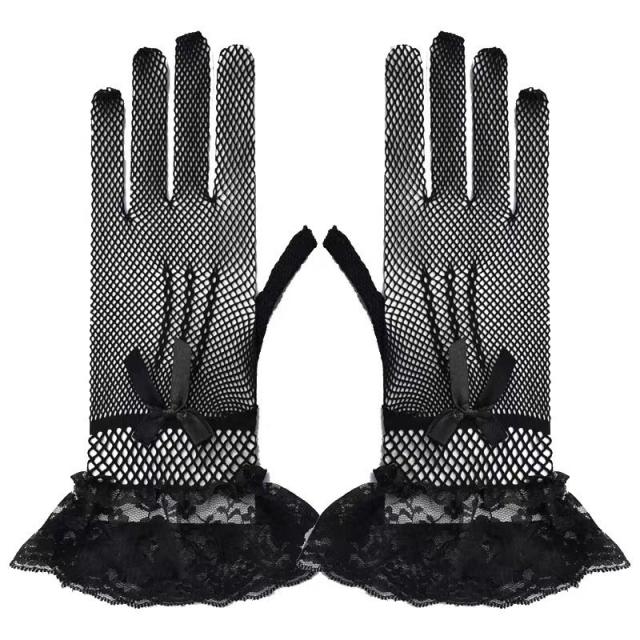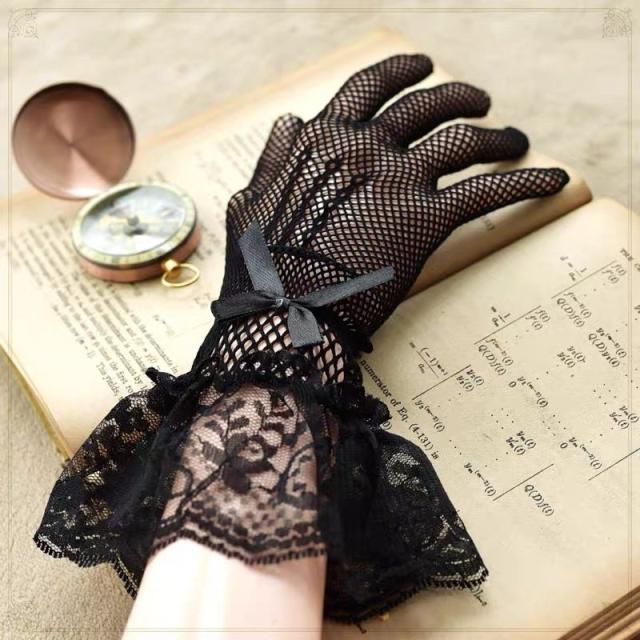 ブライダルグローブ リボン付 レース 手袋 黒 ウエディング コスプレ