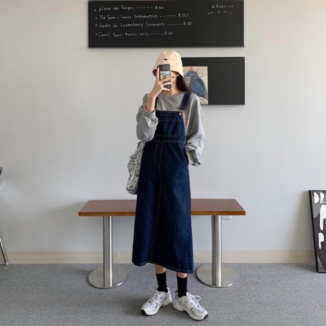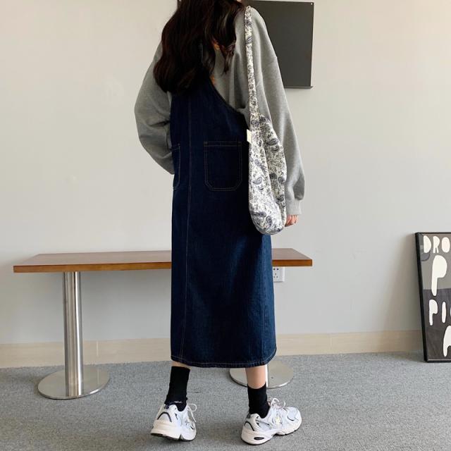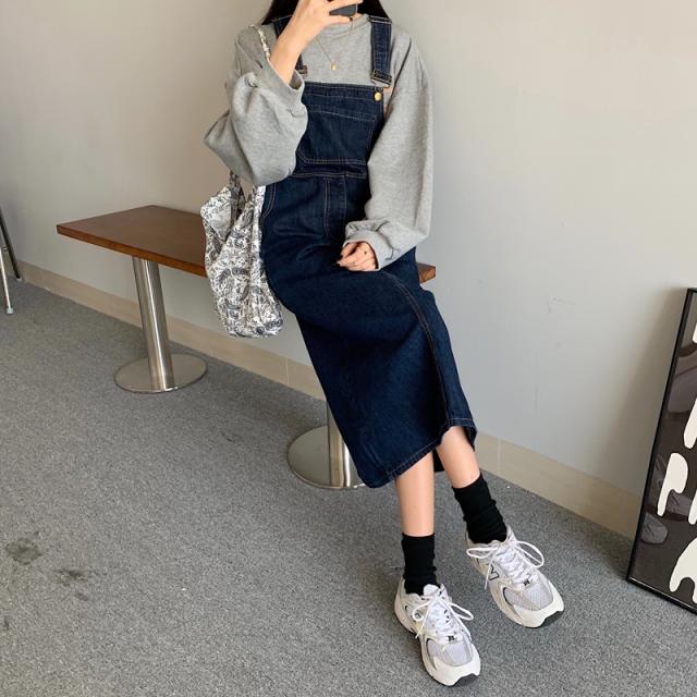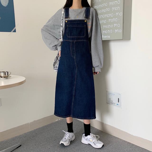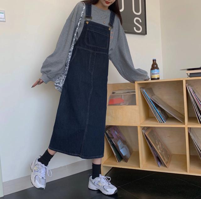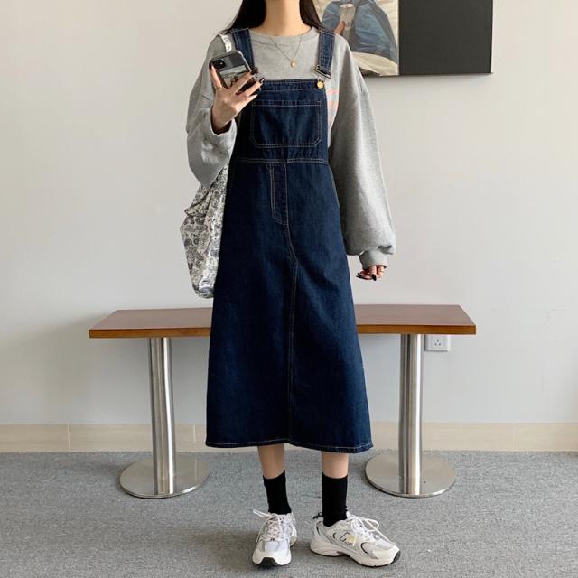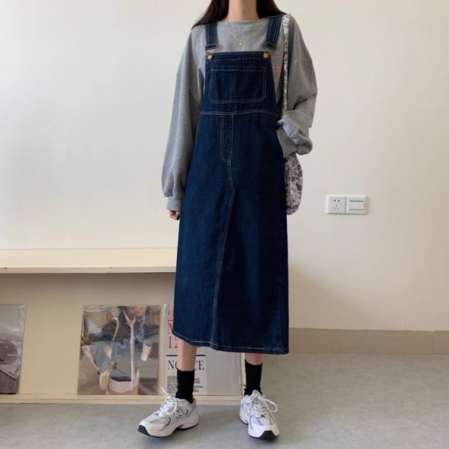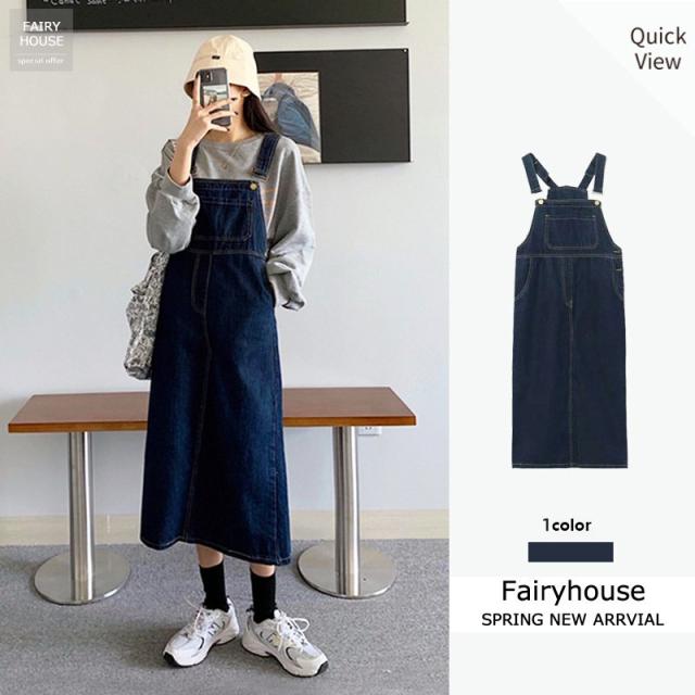 デニム サロベットスカート レディース 40代 デニムスカート 春夏秋 デニム サロベットスカート ロング丈ワンピース 妊婦服 体型カバー 通勤 カジュアル韓国風