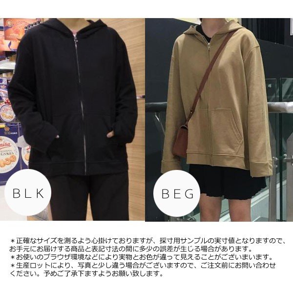 | サイズについての説明 | パーカー トレーナー スウェット レディースおしゃれな、おすすめジップパーカー☆チェックシャツなどとレイヤードもオススメ。全体的にゆとりがありラフに着られるサイジングで、ボディラインが出にくいのも嬉しい。【サイズ】・サイズ....ワンサイズ(M表記あり)・着丈....約60cm・肩幅....約59cm・バスト....約57cm・袖丈....約44cm・脇下....約37cm【詳細】・生地感....薄手スエット生地。・裏地....なし・伸縮性....少し・透け感....なし・付属品....なし・生産国....中国・ブランド....ノーブランド(輸入代行商品)・カラー....BLK、BEG・素材....ポリエステルカットソー ジップ付き トレーナー カットソー カジュアル トップス 秋 冬 長袖 フロントジップ 定番 スエット ガーリー トレーナー 長袖 |