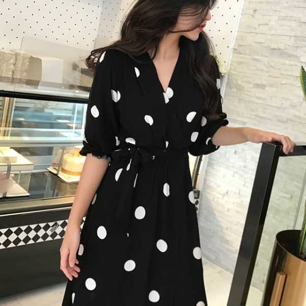 | サイズについての説明 | ワンピース レディース 水玉ワンピ大きな水玉でオシャレ、大人っぽいワンピースです。普段のコーディネートに変化を与えてくれる、ワードローブに加えておきたい1着。デートや女子会におすすめです。ロングワンピース レディース ワンピース 水玉 ワンピ 5部袖 ふんわり ロングワンピ マキシワンピ Vネック ハイウエスト |
