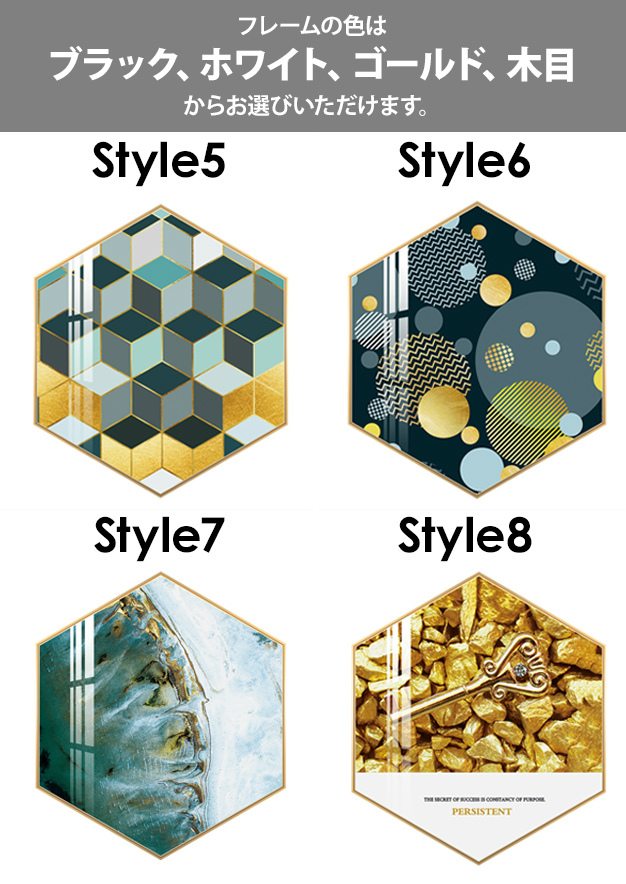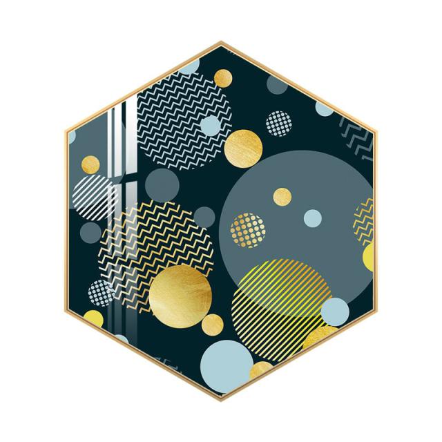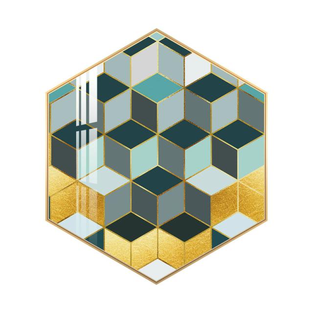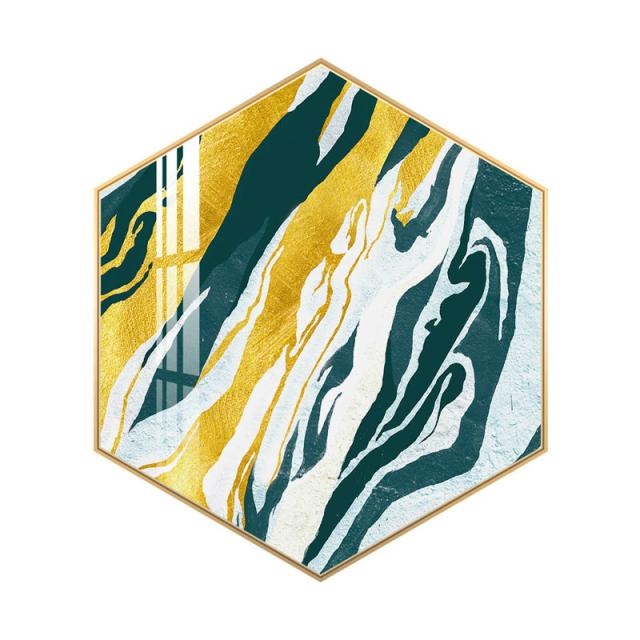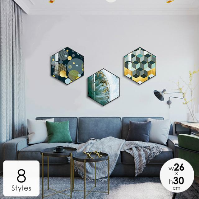 インテリア 壁掛け 壁絵 アートパネル アートボード リビング 寝室 ダイニング 六角形 ラグジュアリー ゴージャス ゴールド グリーン ホワイト可愛い /[ahe26]