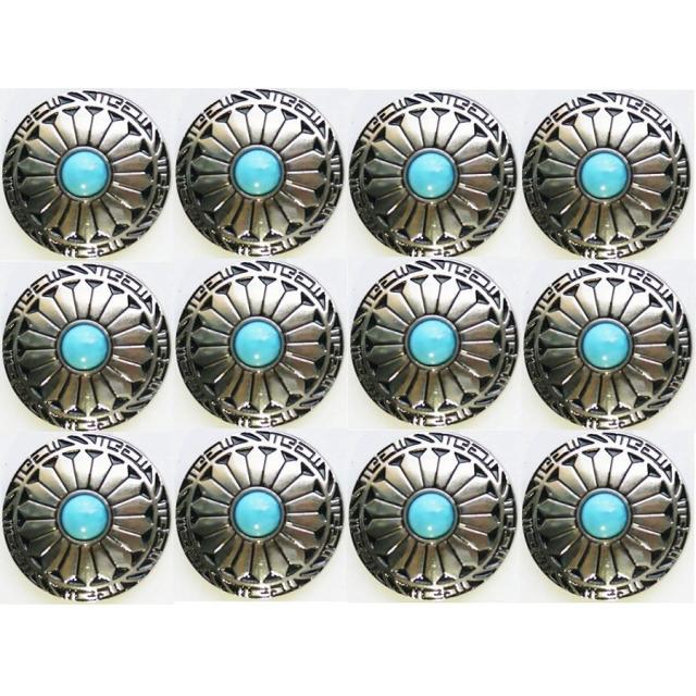 コンチョ ボタン 12個セット ターコイズ ネジ式 30mm レザークラフト 財布 手芸