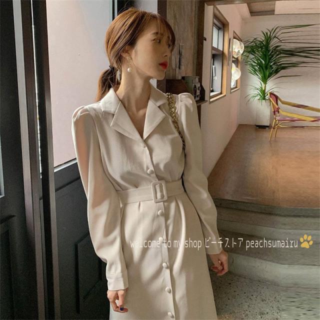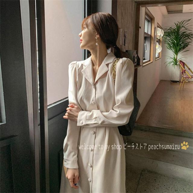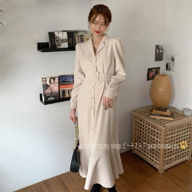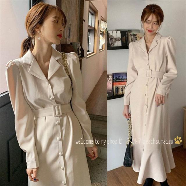 シャツワンピース レディース 40代マキシワンピース 春夏秋新作 長袖ワンピース きれいめ パフスリーブ マーメイドスカート オシャレ 結婚式 お出かけ 大人