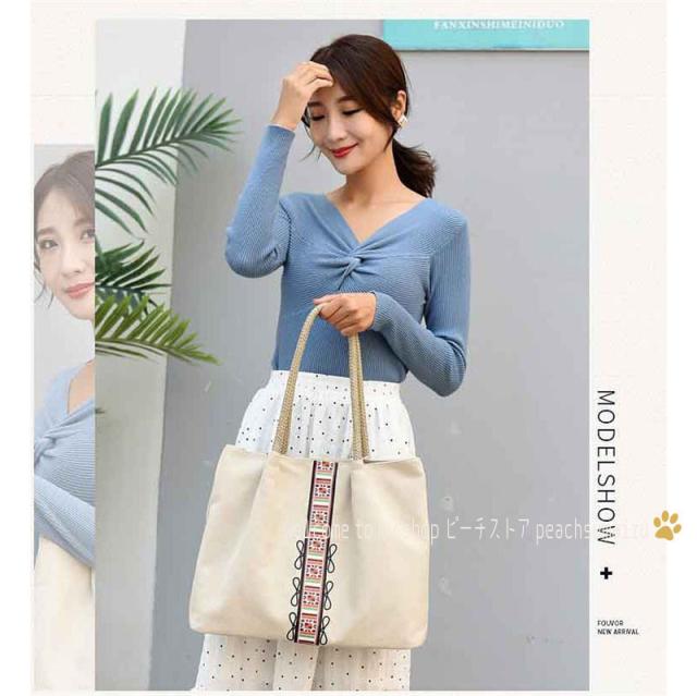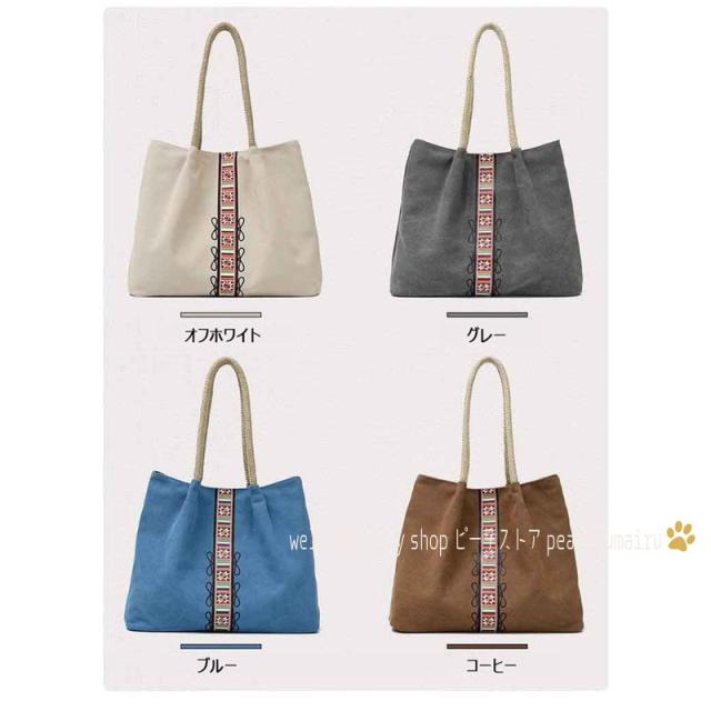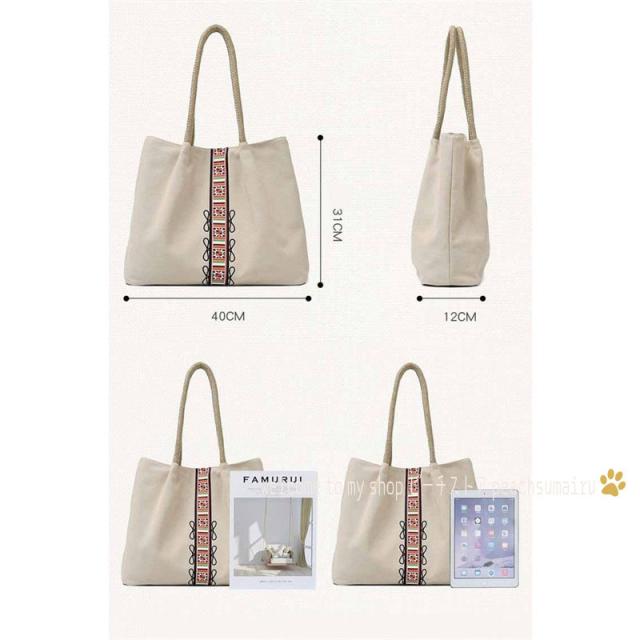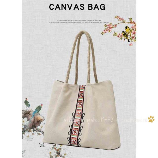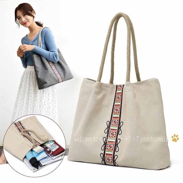 トートバッグ レディース 春夏 キャンパスバッグ かばん トートバッグ 肩掛けバッグ 韓国風 A4対応 ポーチ おしゃれ 手提げ袋 大容量 軽いエコバッグ エスニック
