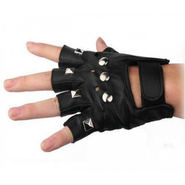 フィンガーレスグローブ スタッズ レザー バイク ダンス ロック コスプレ ブラック