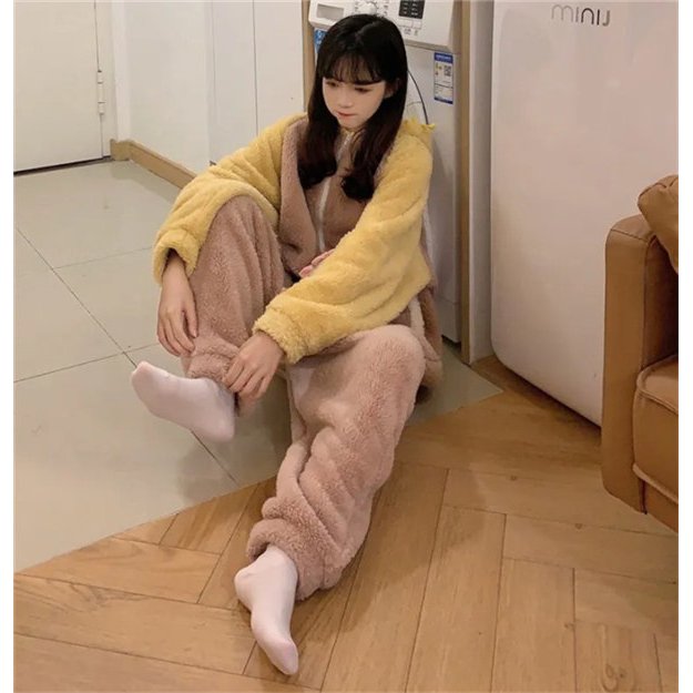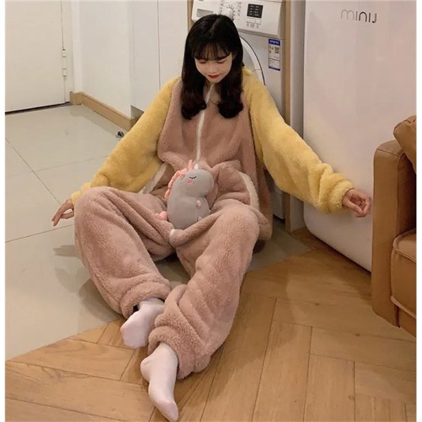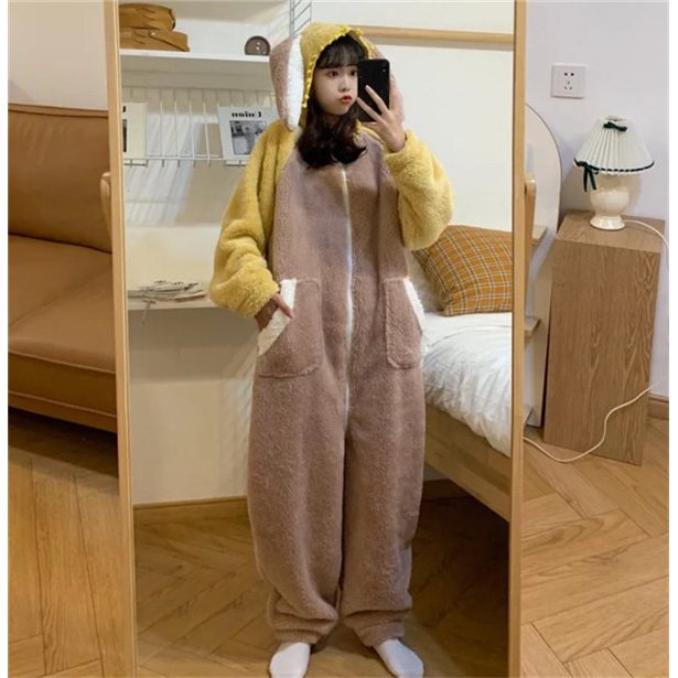 パジャマ 連体パジャマ レディース ルームウェア フランネル 長袖 可愛い ロング 厚手 フード付き ゆったり 韓国風 寝巻き 部屋着 寝間着 冬 暖かい 防寒