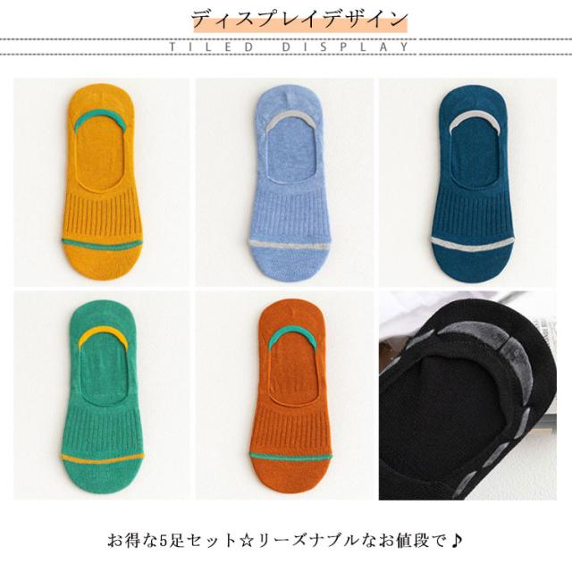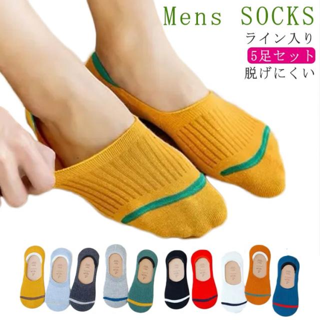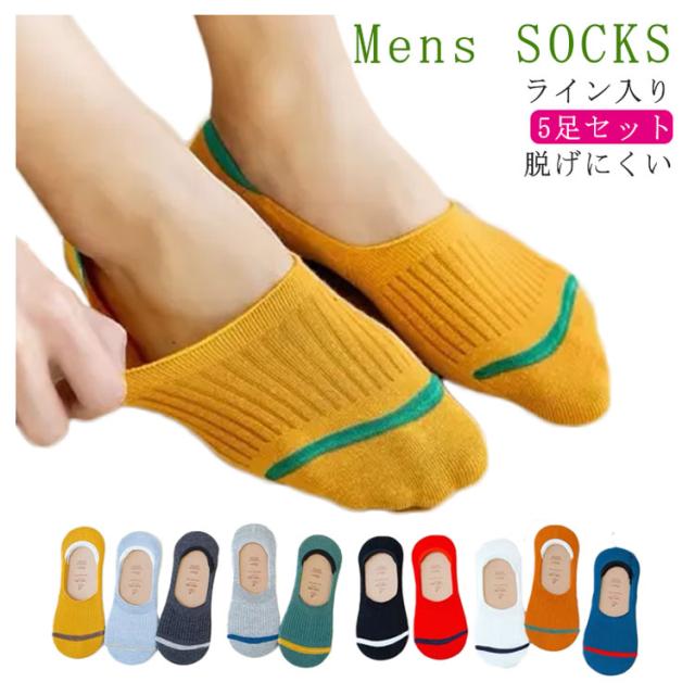 5足セット ライン入り 靴下 ソックス 脱げない スニーカーソックス メンズ フットカバーソックス カバーソックス 春夏 フットカバー 脱げにくい 滑り止め付き シンプル ベーシック スリッポン 靴下 ソックス 滑りとめ くるぶし ソックス 吸水速乾 防臭 送料無料